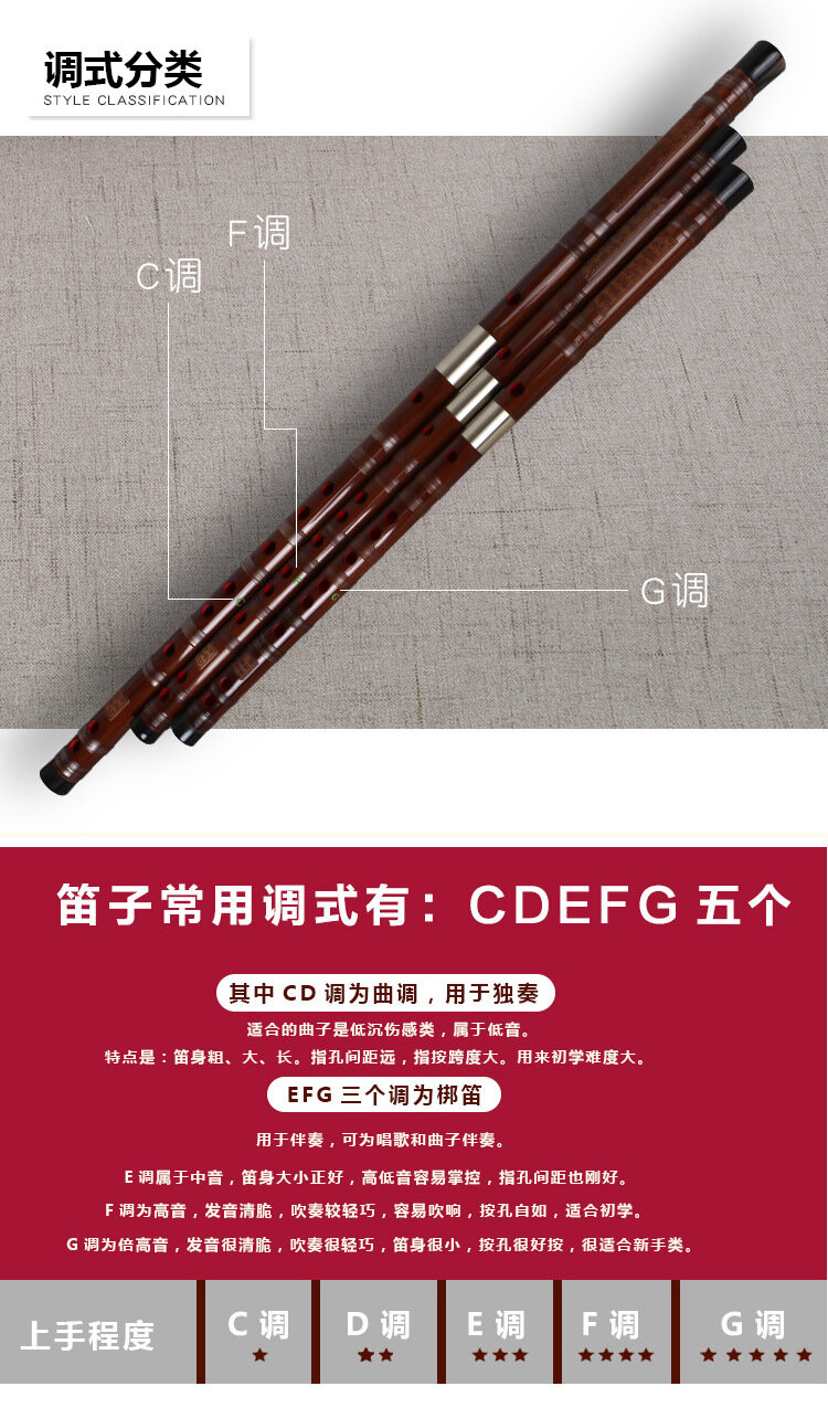 Флейта "Бамбуковая флейта", цвет E tone, с надписью, двойная вставка интересное: