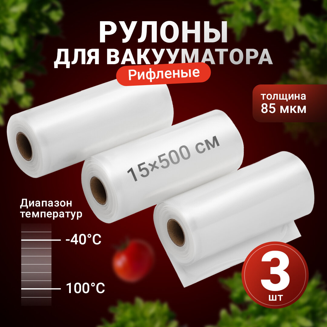 Пакеты для вакууматора рифленые, Shiny Kitchen, Рулоны для вакуумного упаковщика, 15x500 см, 3 рулона интересное: