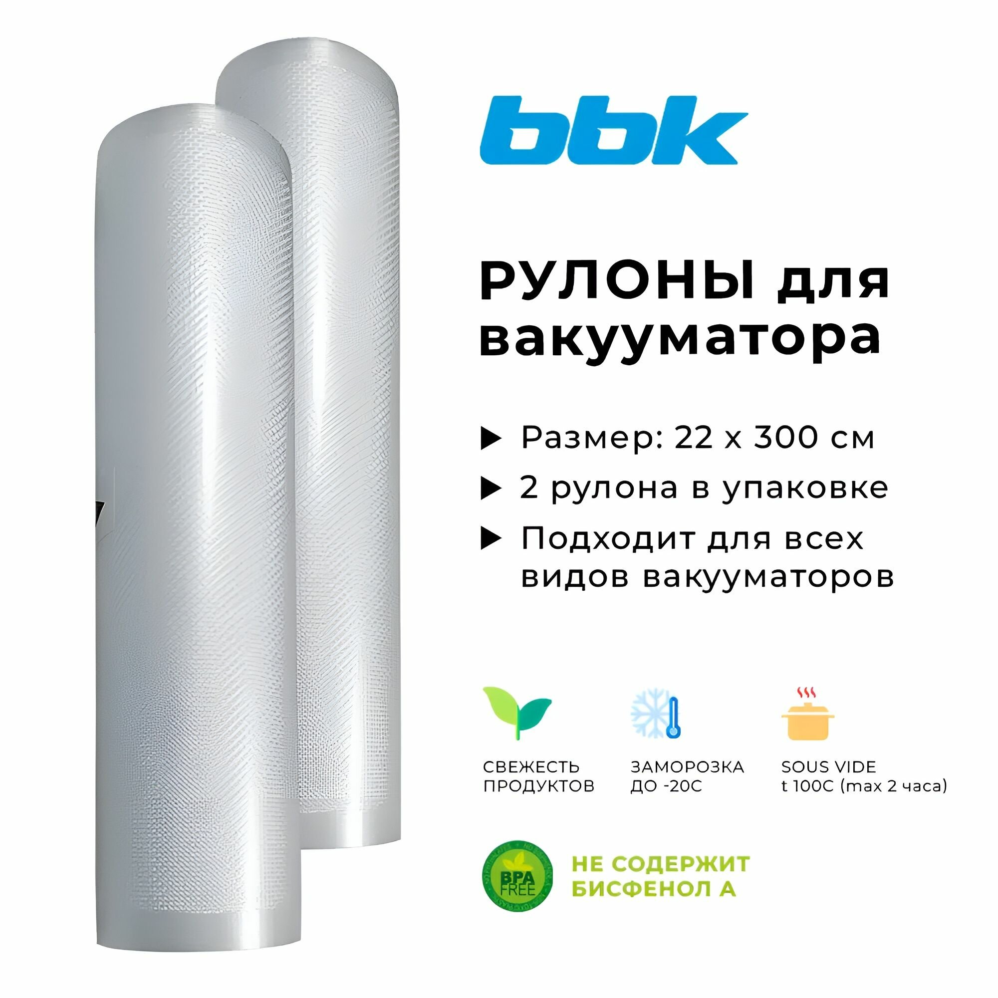 Рулоны для вакуумного упаковщика BBK BVR022 прозрачный, размер 22х300 см, в упаковке 2 шт.