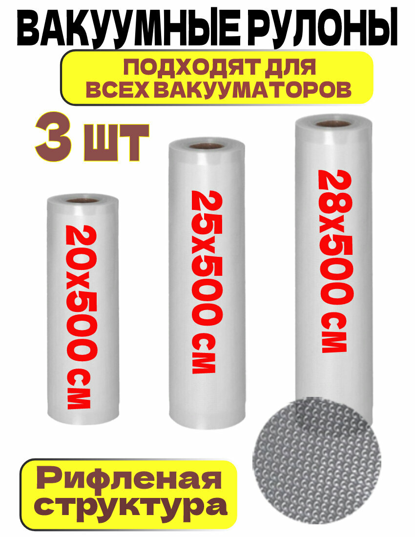 Купить Пакеты для вакууматора набор рулонов 20,25,28 х 500 см / для вакуумного упаковщика / рифленые /для сувид