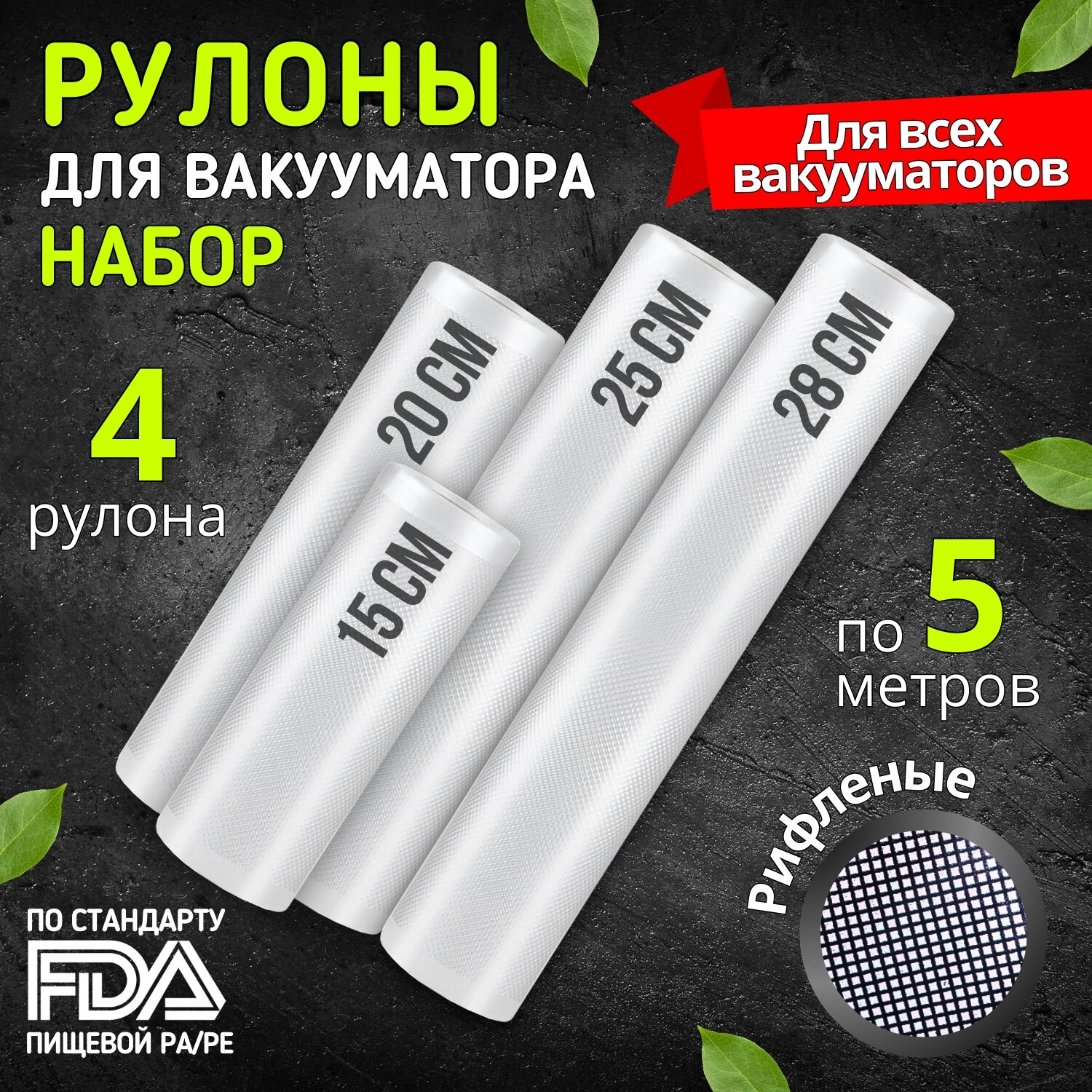 Пакеты для вакууматора рифленые, пленка для вакуумного упаковщика, рулон для заморозки и хранения продуктов набор 12, 15, 20, 25, 28 * 500 см