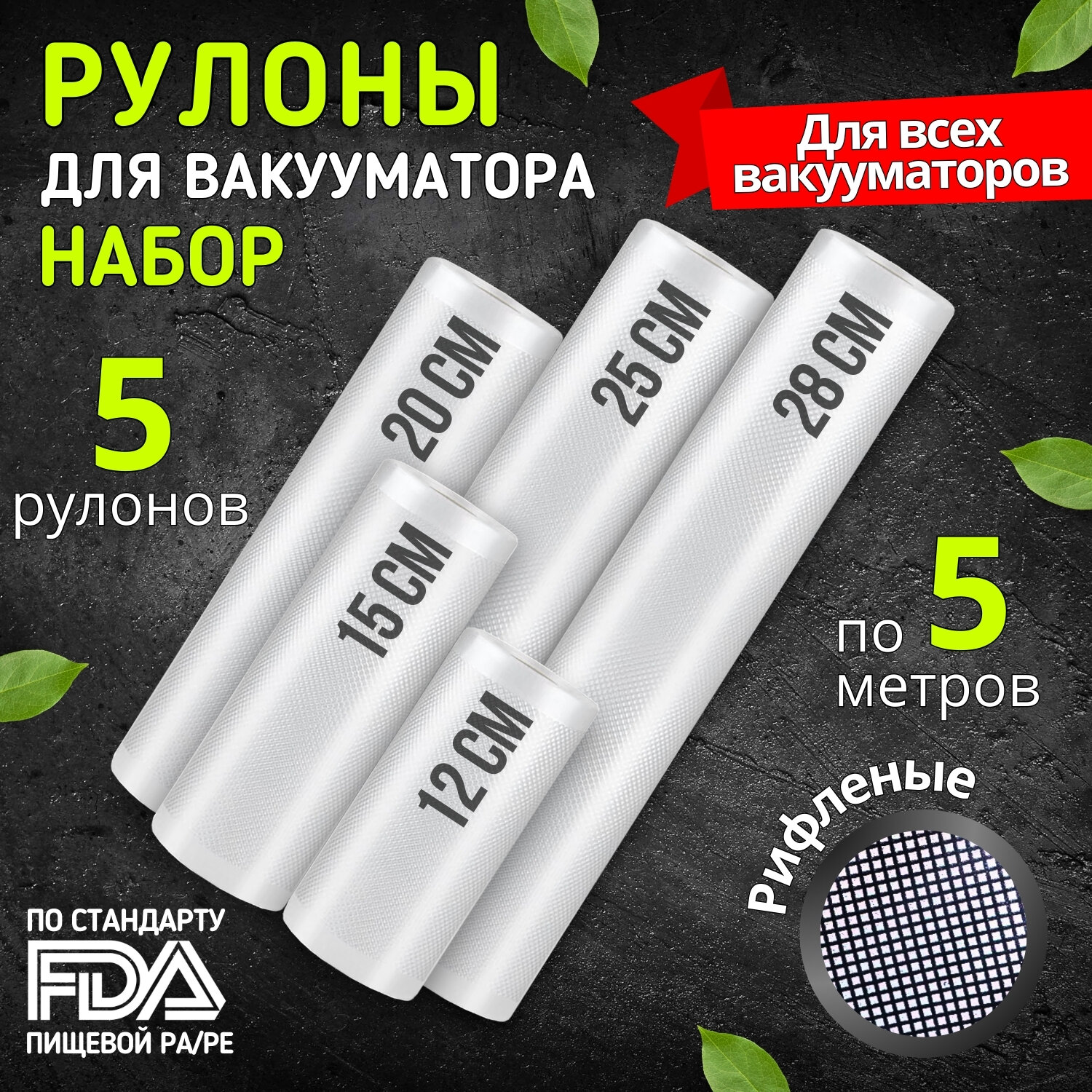 Купить Пакеты для вакууматора рифленые, пленка для вакуумного упаковщика, рулон для заморозки и хранения продуктов набор 12, 15, 20, 25, 28 * 500 см