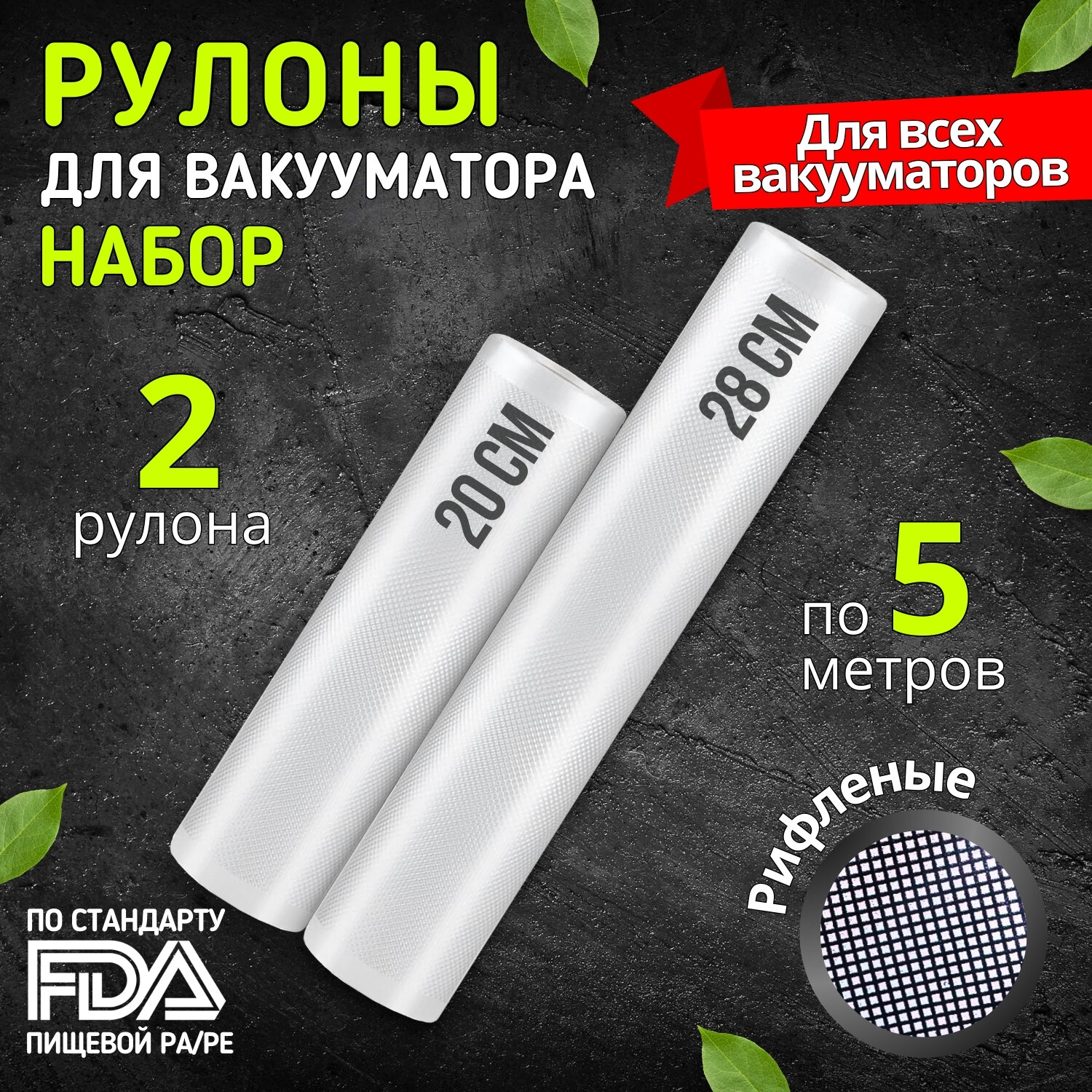 Пакеты для вакууматора рифленые, пленка для вакуумного упаковщика, рулон для заморозки и хранения продуктов набор 12, 15, 20, 25, 28 * 500 см