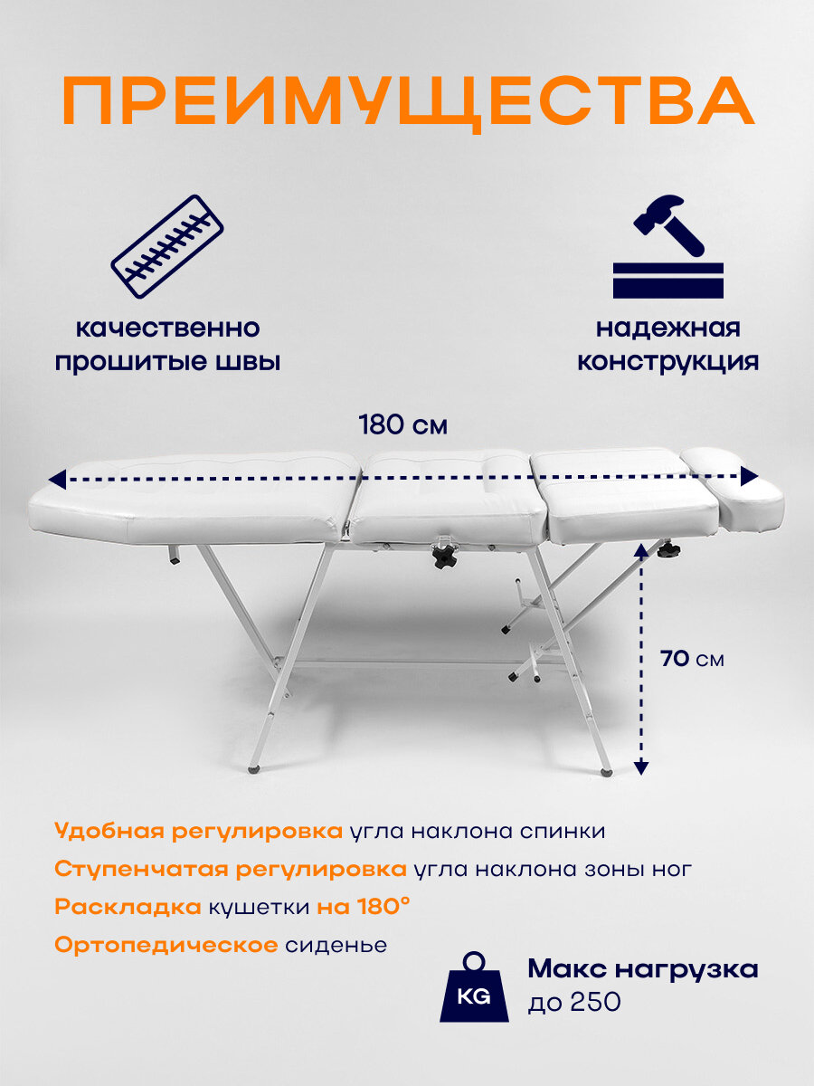 Купить Педикюрное кресло Горизонт, кушетка косметологическая для салона красоты, 180*56, Уютный мастер, белый