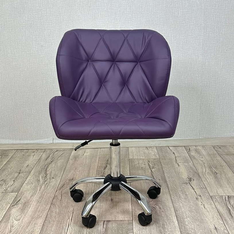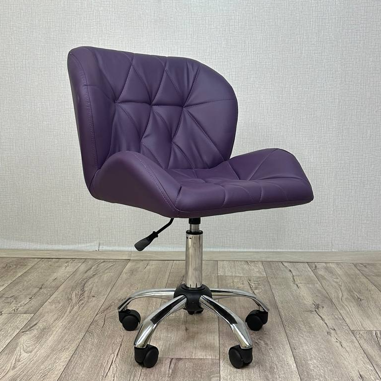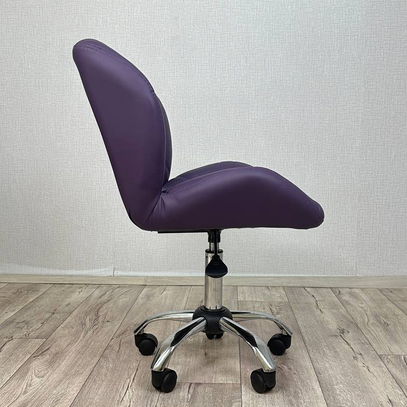 Стул мастера со спинкой, Ракушка, большой, FitBest, экокожа, хром, колеса, сиреневый