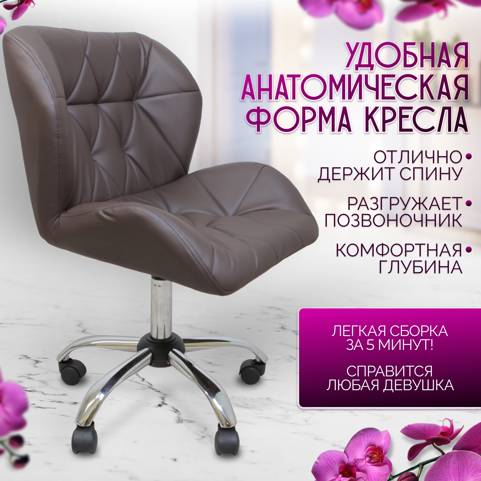 СохранитьСтул для мастера на колесиках, шоколад интересное: