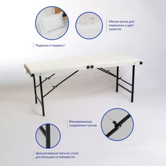 Кушетка для тату Mass Life 3 Секции, белая р-р 180х60х70 см (регулировка высоты) интересное: