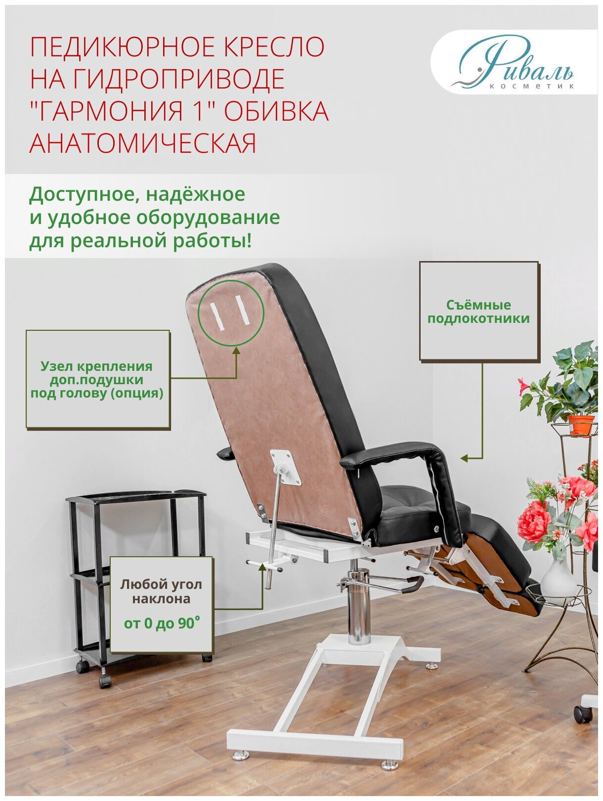 Педикюрное кресло "Гармония-1" анатомическая обивка, черный цвет интересное: