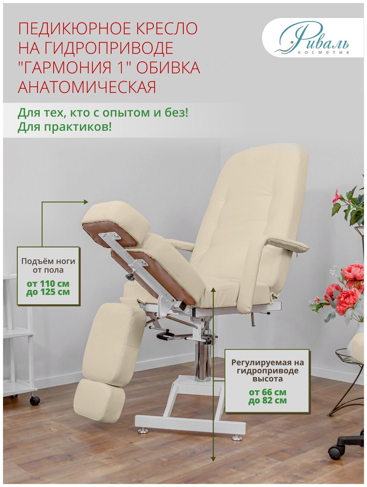 Педикюрное кресло "Гармония-1" анатомическая обивка, бежевый цвет интересное: