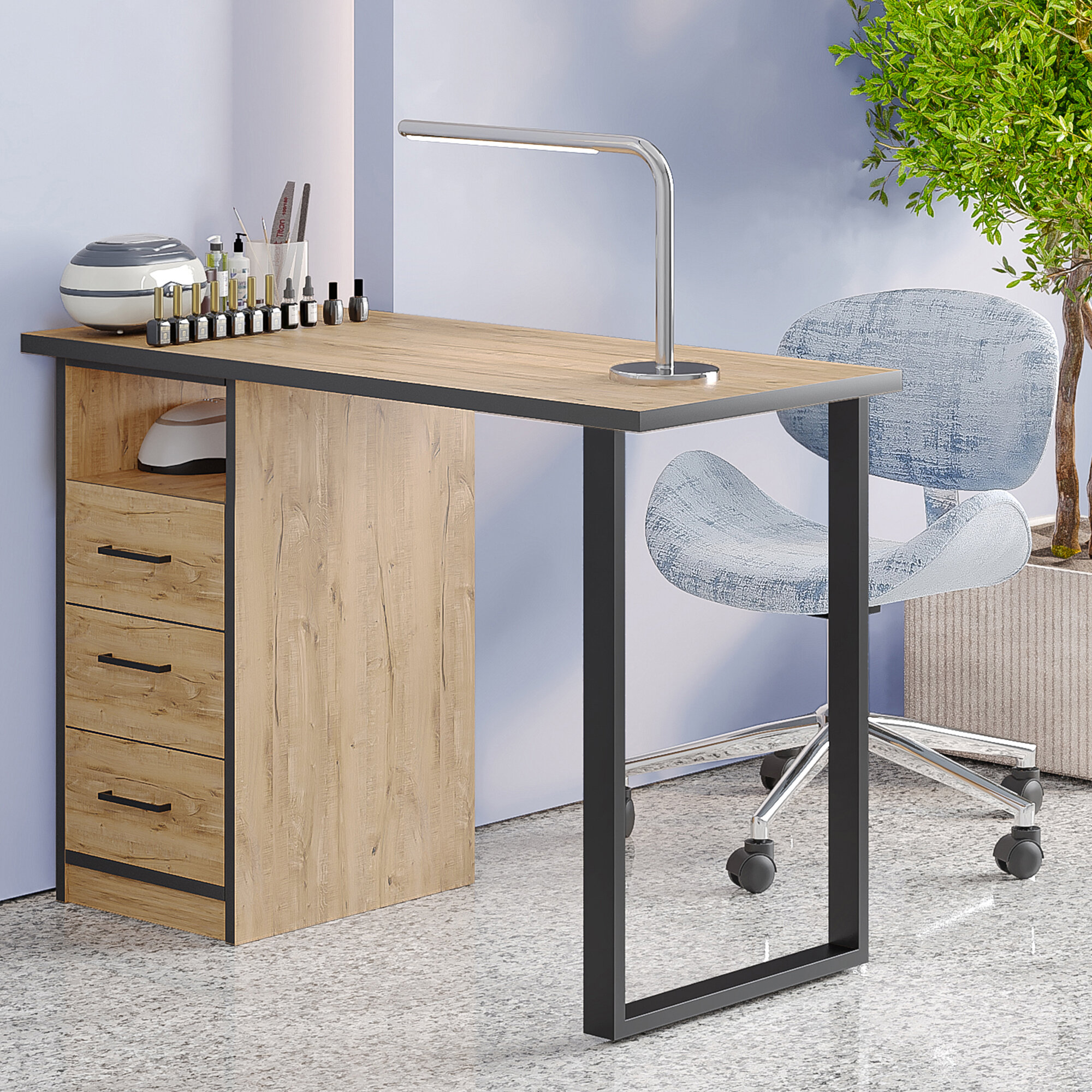 Купить Стол для маникюра с ящиками, цвет дуб вотан с черной кромкой