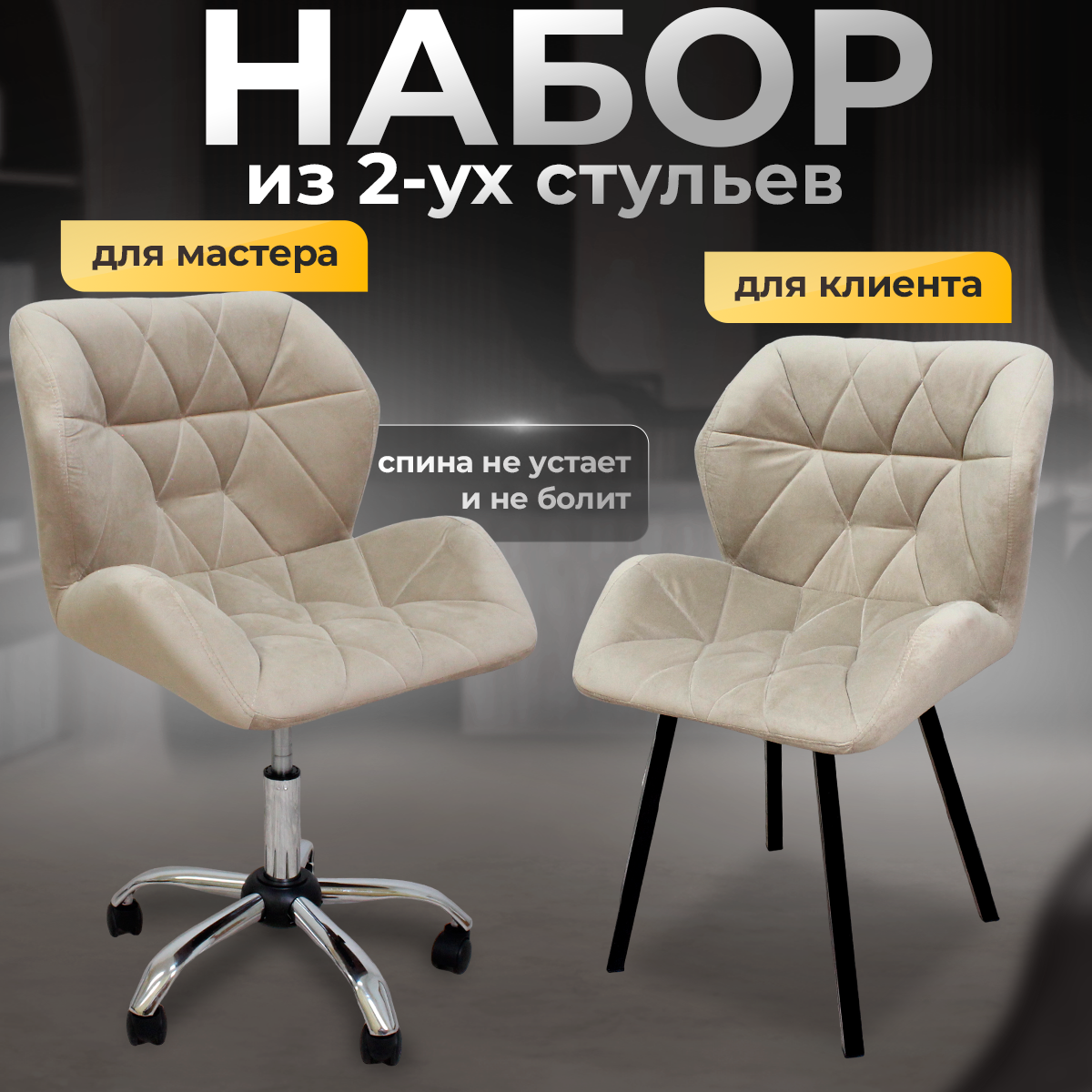 Стулья для мастера и клиента, комплект, темно-бежевый велюр
