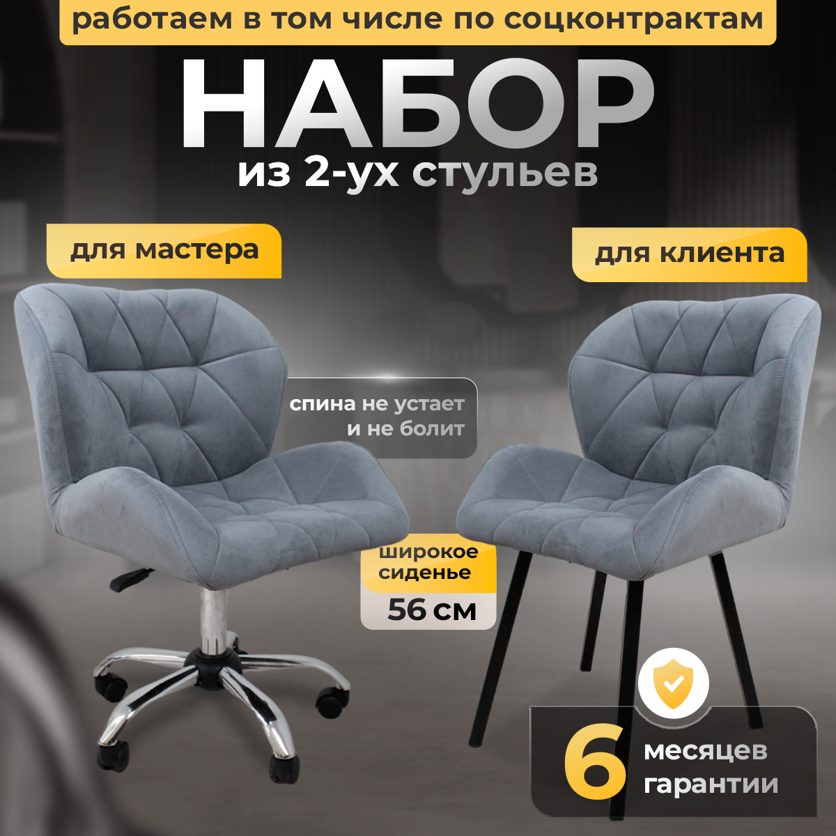 СохранитьСтулья мастера и клиента, комплект , серый велюр интересное: