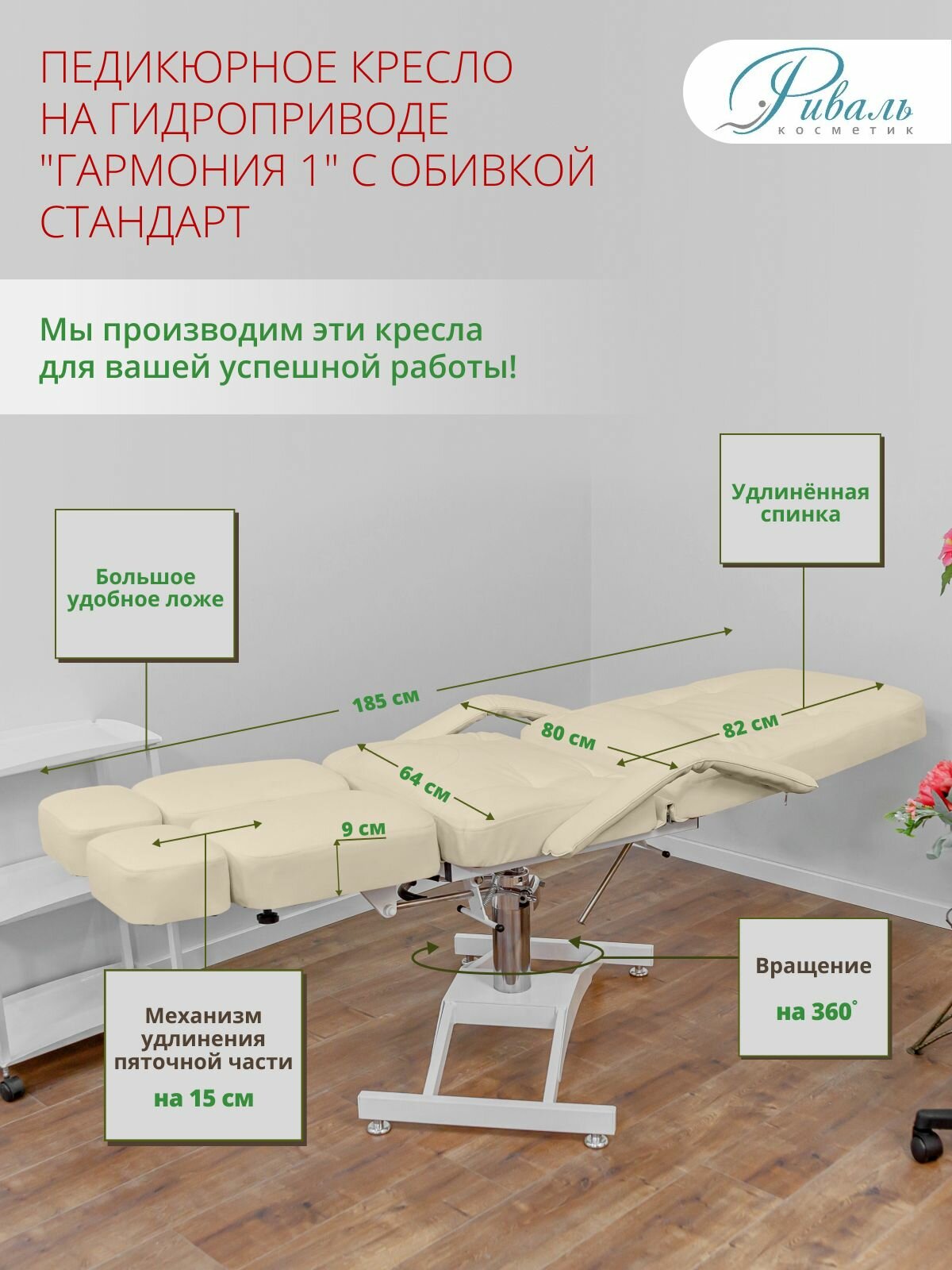 СохранитьКресло педикюрное на гидравлике "Гармония-1", Риваль, обивка бежевая стандартная/кресло для педикюра, для тату интересное: