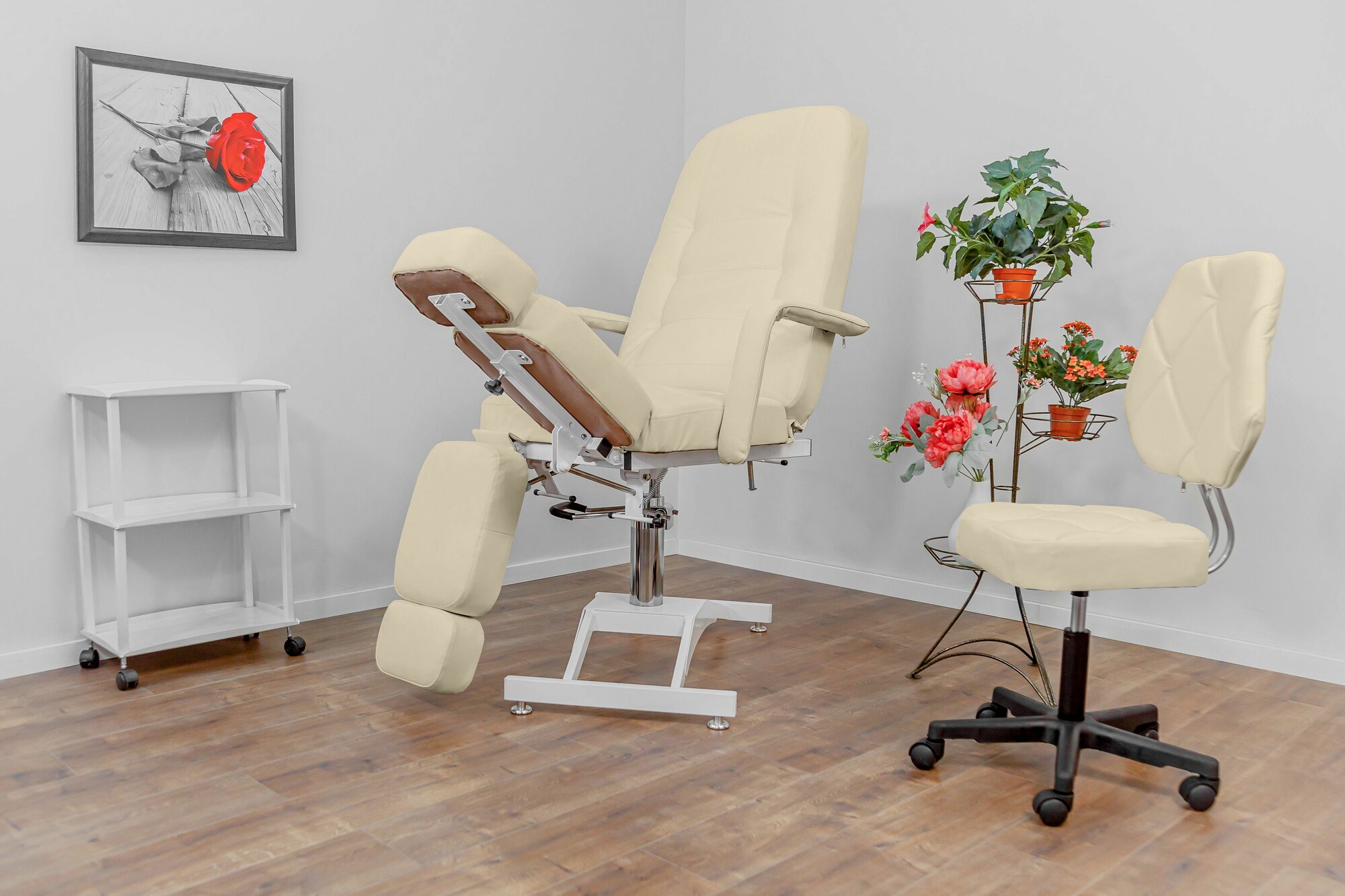 Кресло педикюрное на гидравлике "Гармония-1", Риваль, обивка белая стандартная/кресло для педикюра, для тату