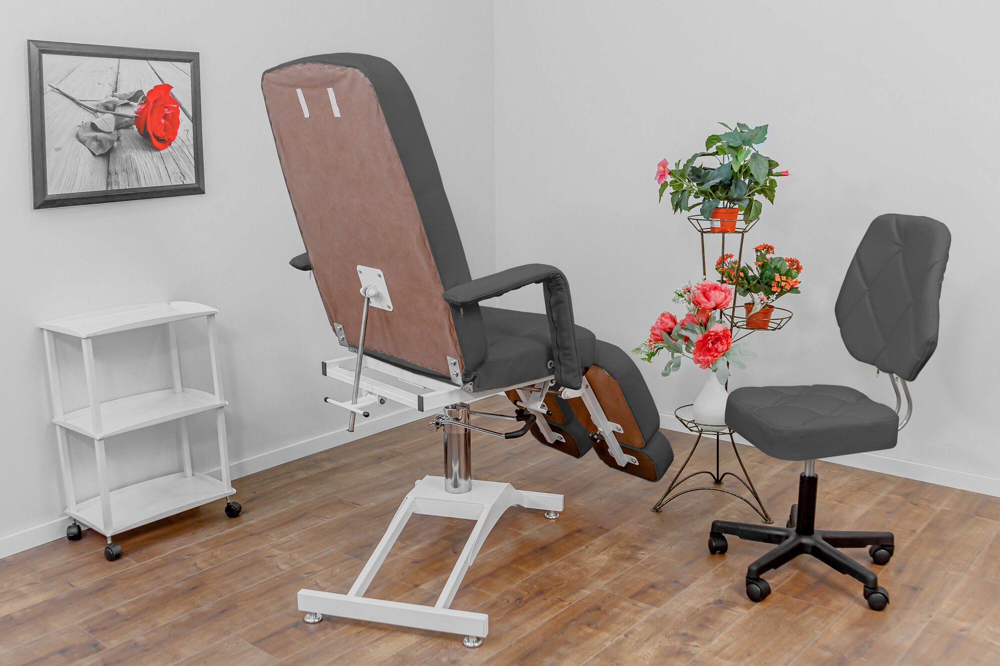 Кресло педикюрное на гидравлике "Гармония-1", Риваль, обивка коричневая стандартная/кресло для педикюра, для тату