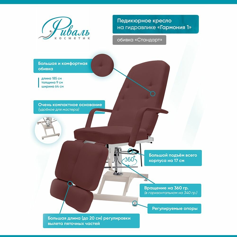 СохранитьКресло педикюрное на гидравлике "Гармония-1", Риваль, обивка коричневая стандартная/кресло для педикюра, для тату интересное: