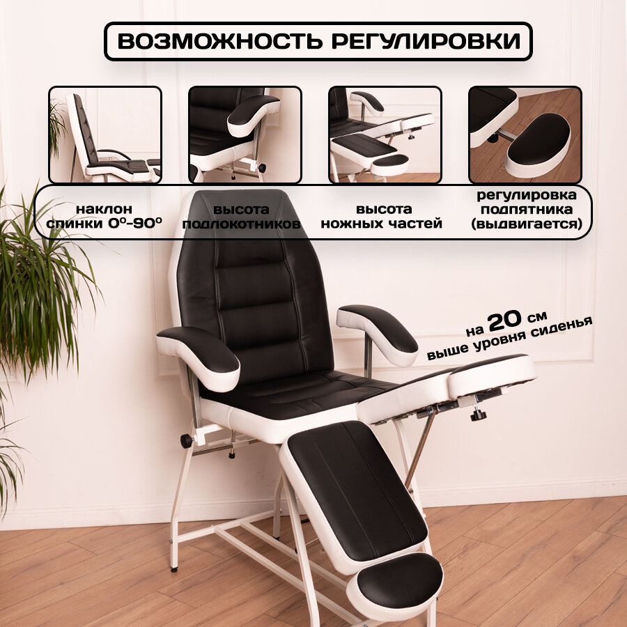 Кресло-кушетка косметологическое для маникюра и педикюра кушетка Cosmotec Сириус, черно-белое интересное: