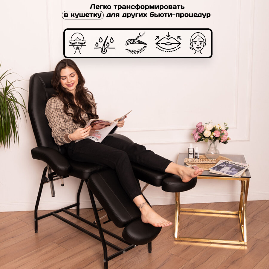 Кресло-кушетка косметологическое для маникюра и педикюра кушетка Cosmotec Сириус, чёрное интересное: