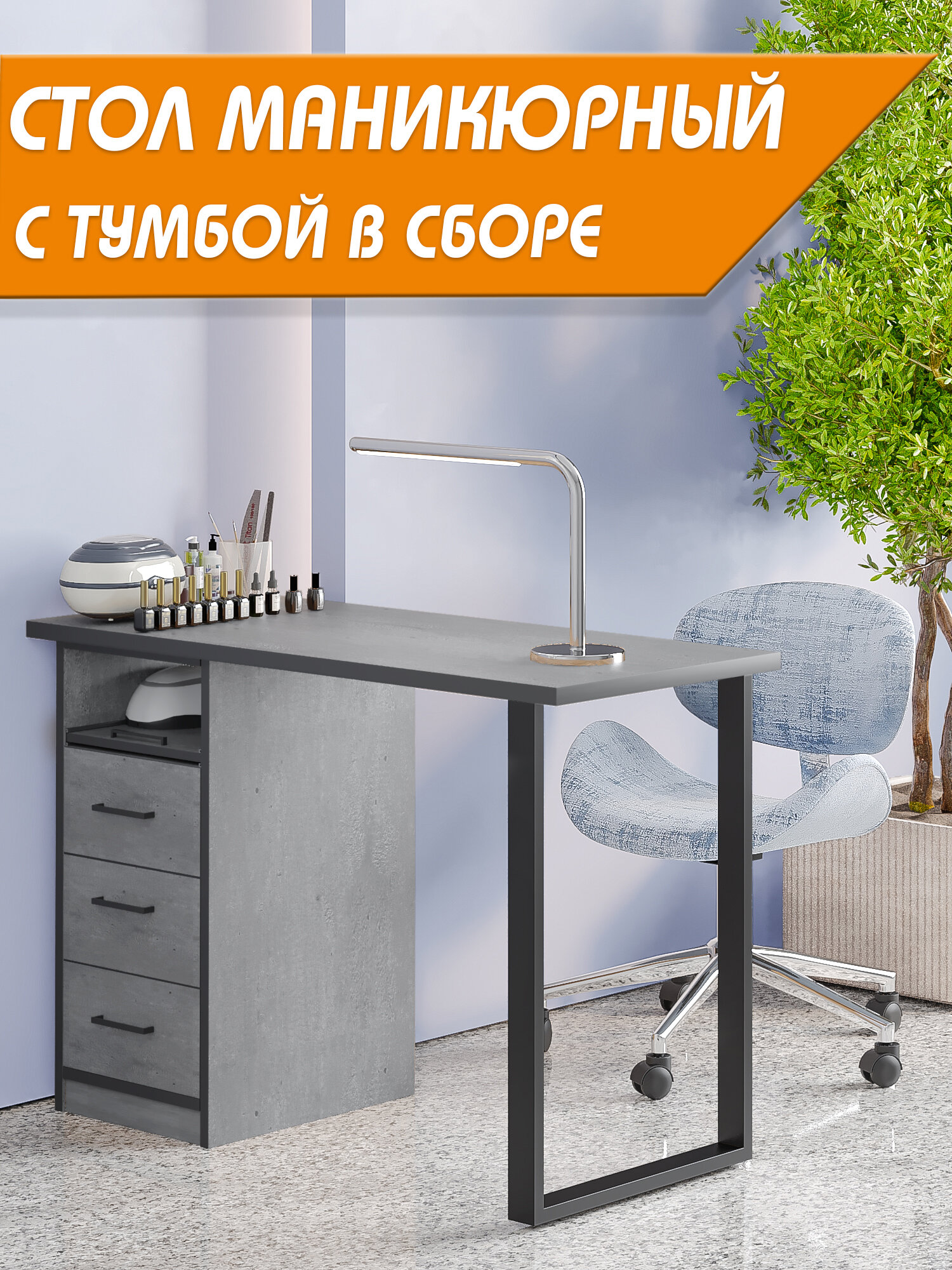 Стол для маникюра с выдвижной полкой, цвет метрополитан