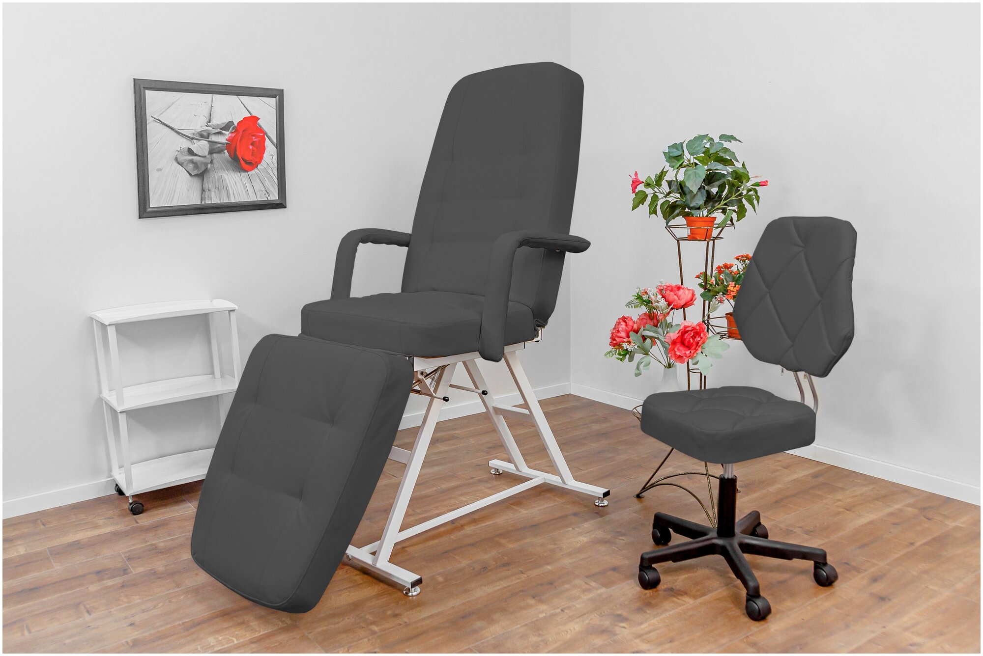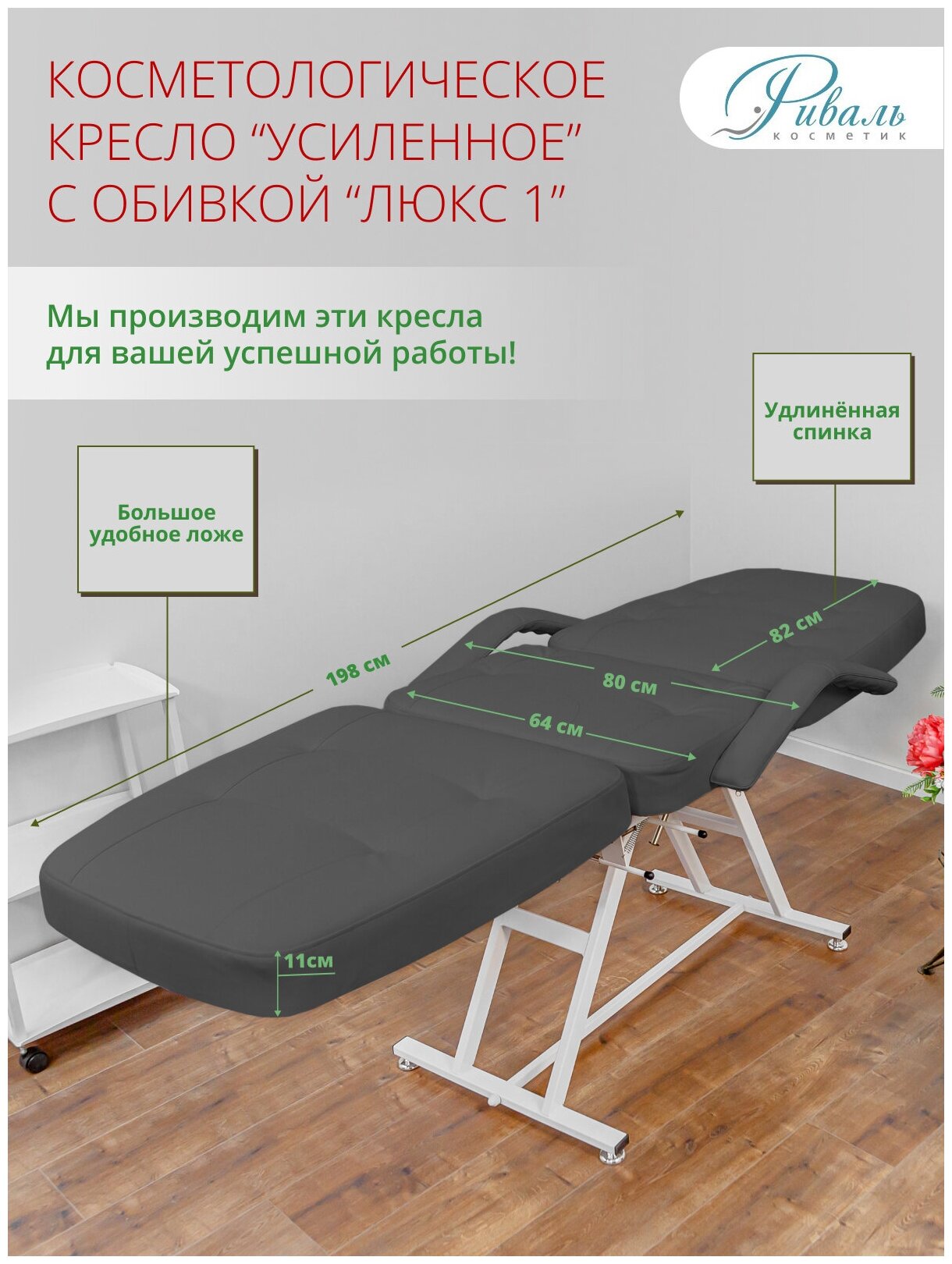 Кресло косметологическое "усиленное" с черной обивкой ЛЮКС-1/кушетка для косметолога, для наращивания ресниц