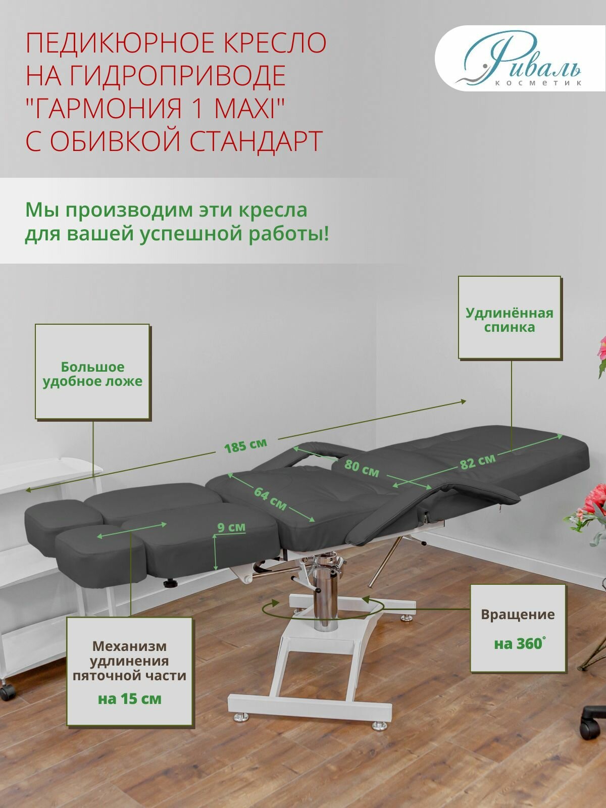 Педикюрное кресло "ГАРМОНИЯ-1 макси" обивка черная анатомическая/кресло для педикюра, для тату