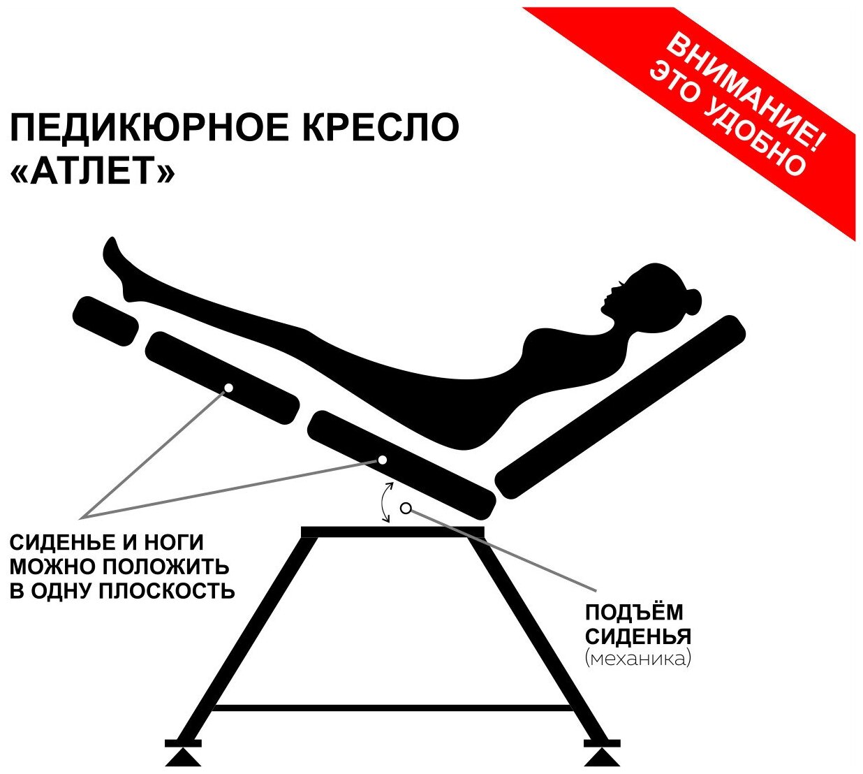 Кресло педикюрное "Атлет" кресло для тату, для салона красоты, экокожа, обивка цвет черный стандарт, подъем сиденья