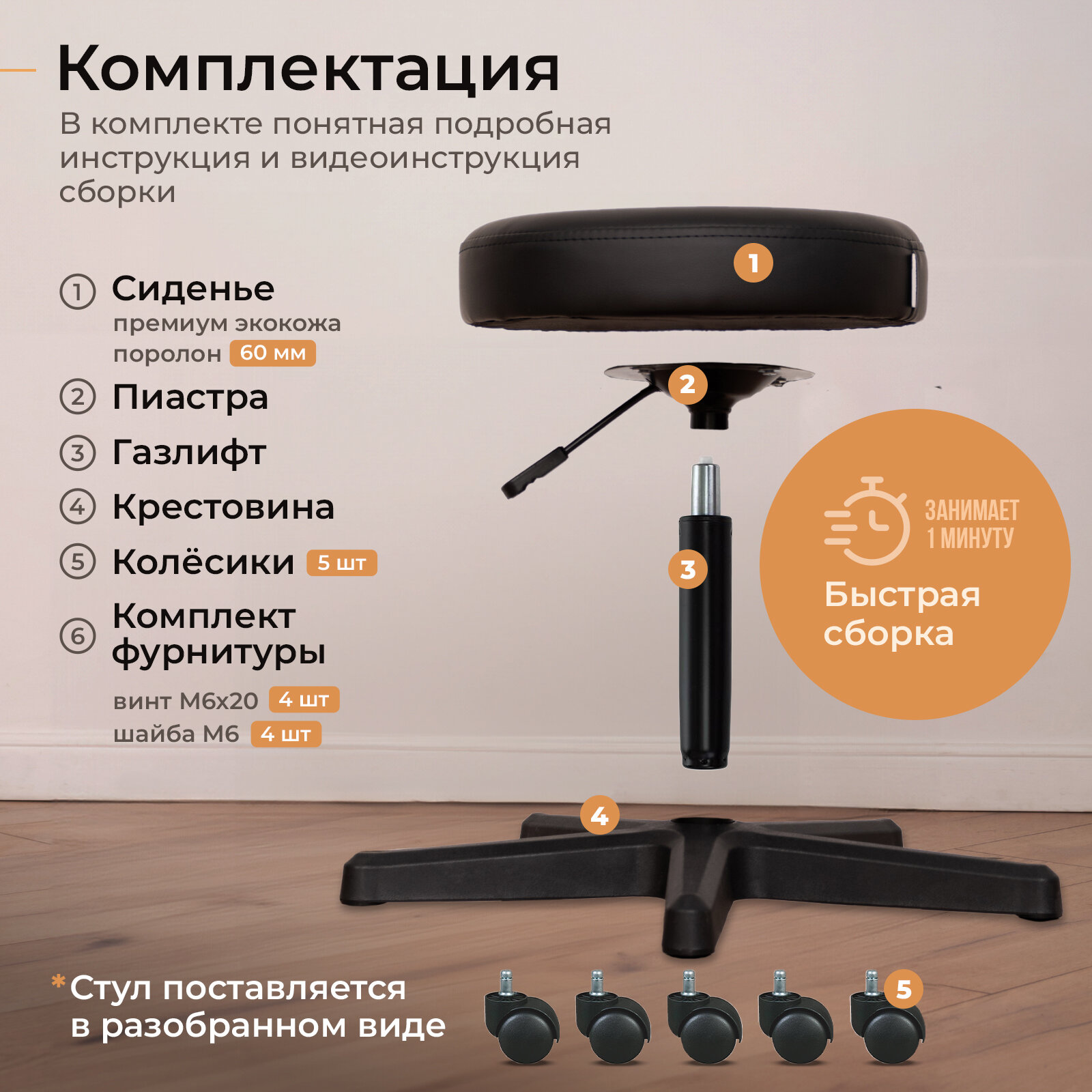 Стул седло для мастера Cosmotec Комета, на колесиках, черный интересное: