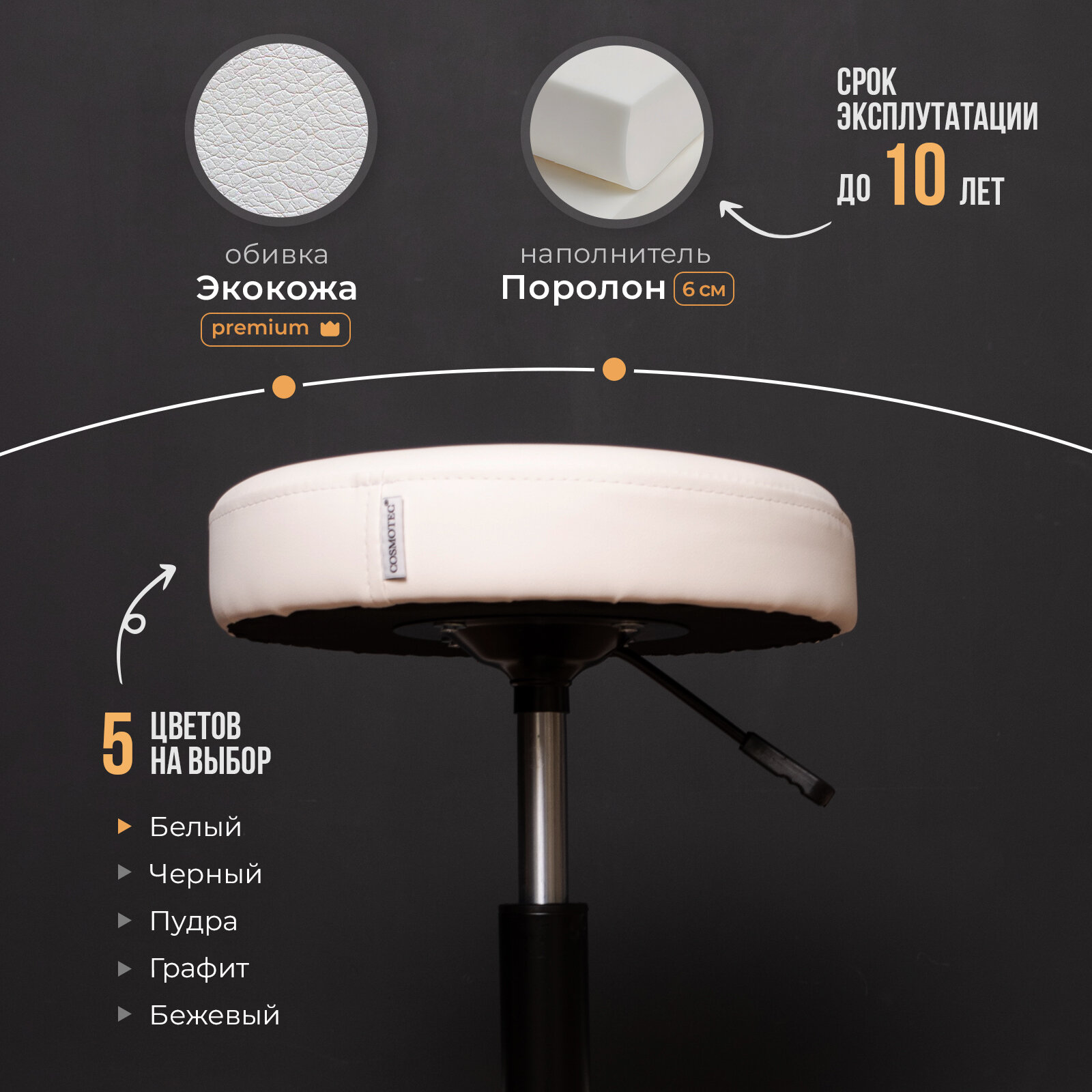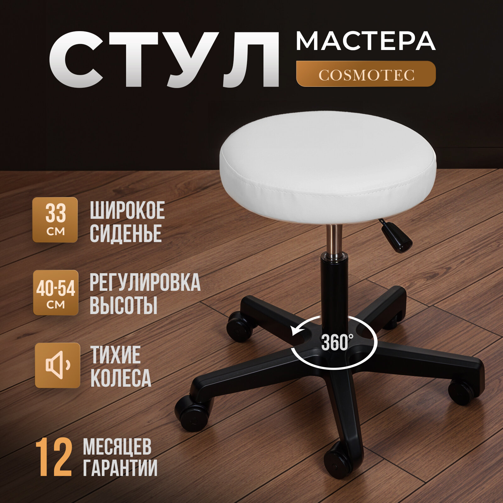Стул седло для мастера "Cosmotec Комета" на колёсиках, белый интересное: