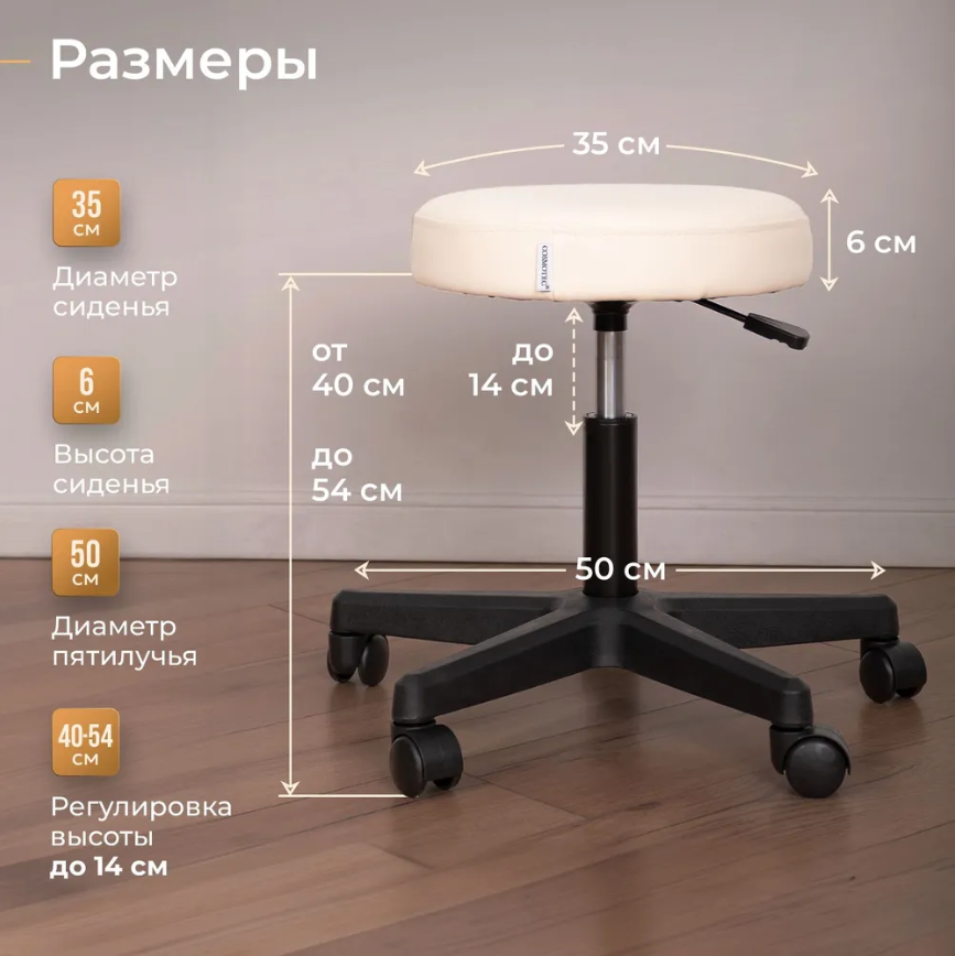Стул для мастера "Cosmotec Комета" на колесиках, пудра