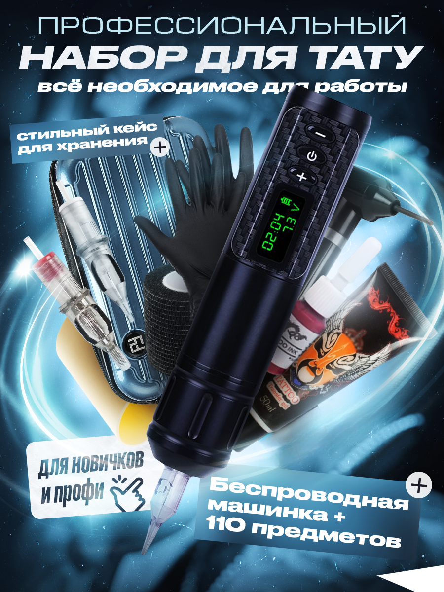 Беспроводная тату-машинка с набором для татуировок интересное: