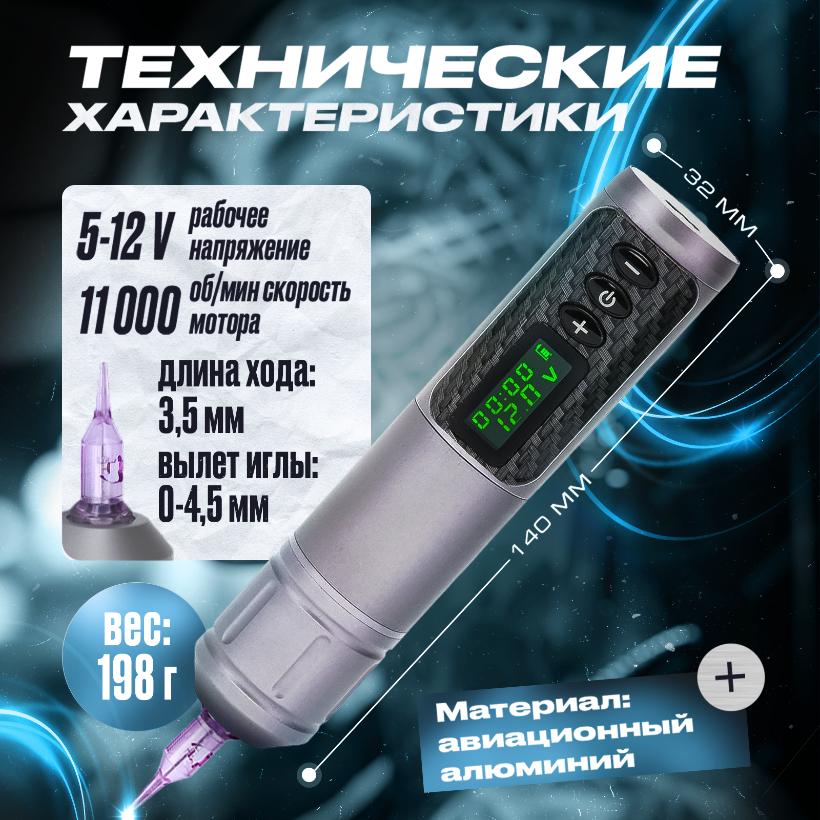 Беспроводная машинка ручка для тату и татуажа Defender VECTOR Chromium