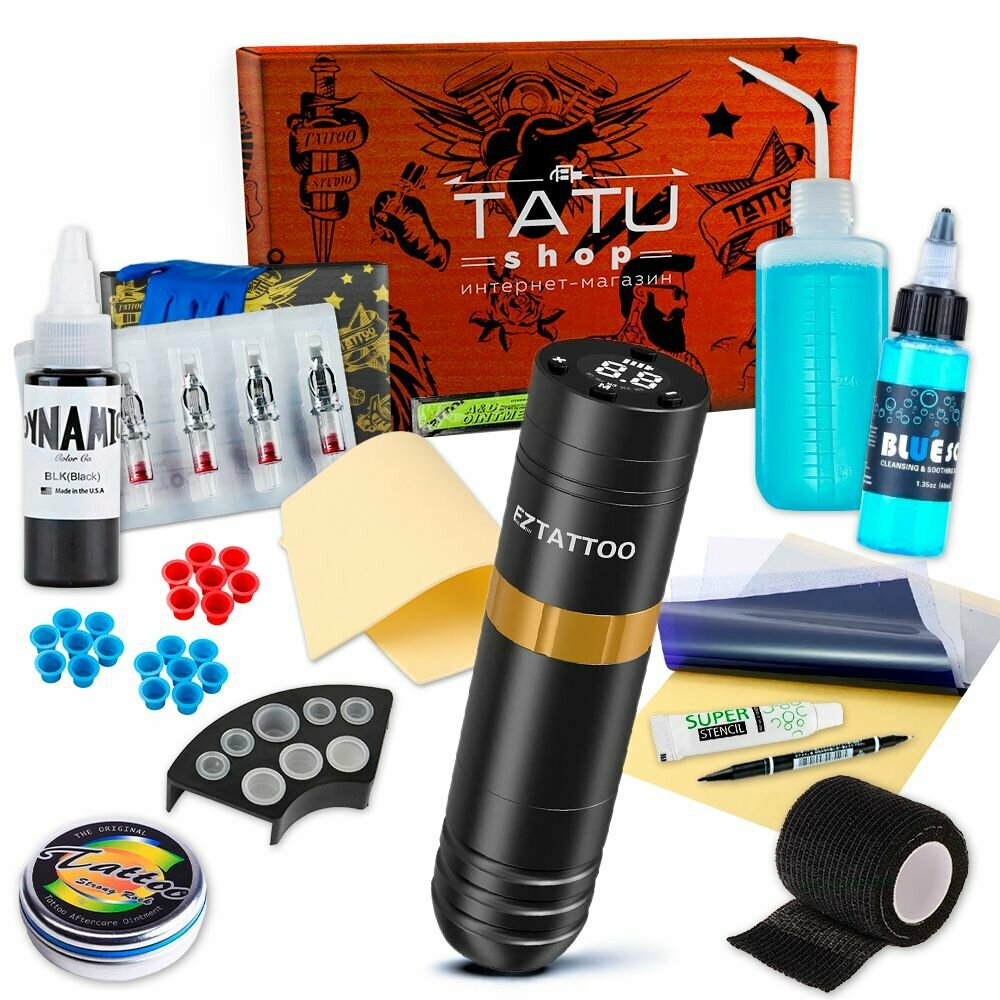 Купить Готовый тату набор с беспроводной машинкой EZ Caster Wireless Gold