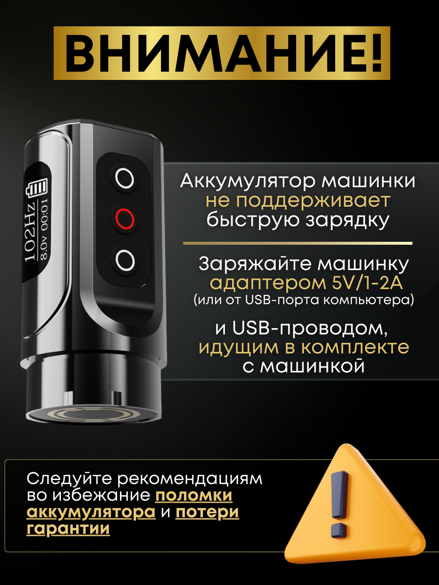 | Комплектация | тату машинка, переходник RCA, шнур зарядки Type-C, запасные резинки. |