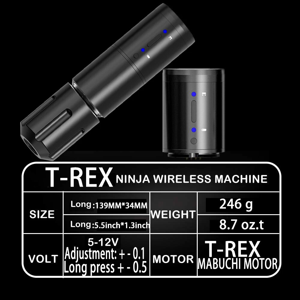 Портативная беспроводная тату-машинка T-Rex NINJA RS с аккумулятором емкостью 800 мАч Время работы 5 часов для тела художника интересное:
