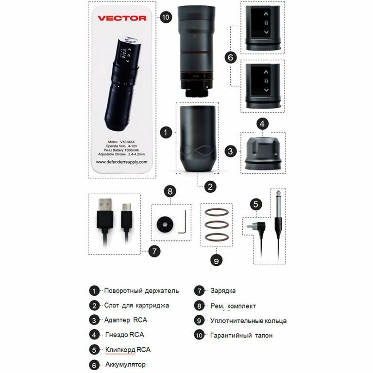 Беспроводная машинка ручка для тату и татуажа Defender VECTOR Chromium интересное:
