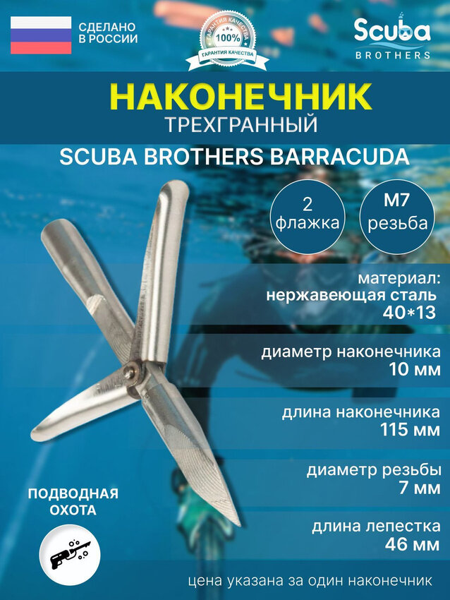 Наконечник для подводной охоты SCUBA BROTHERS BARRACUDA трехгранный, 2 лепестка интересное: