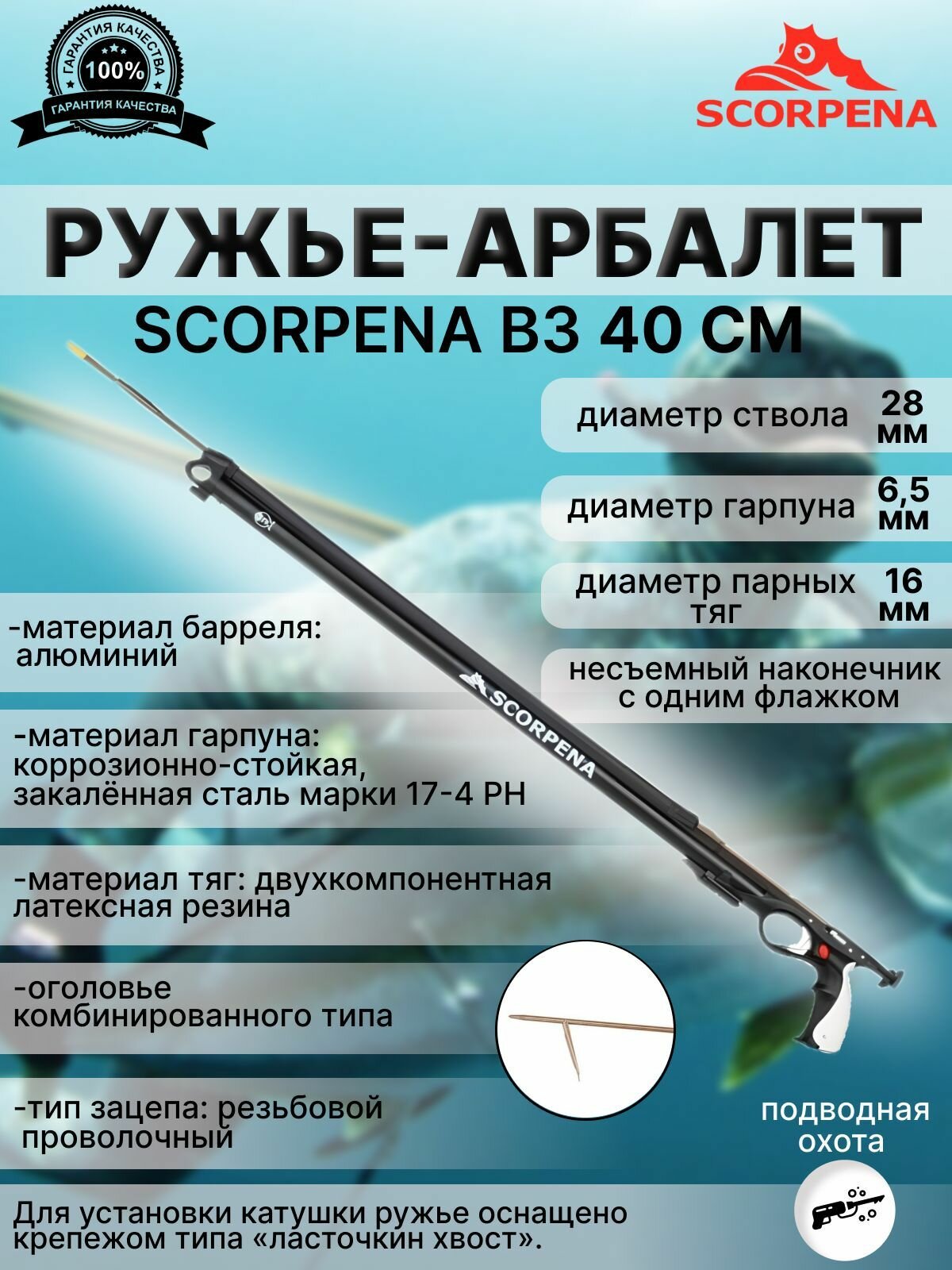 Ружье-арбалет для подводной охоты SCORPENA B3, 40 см интересное: