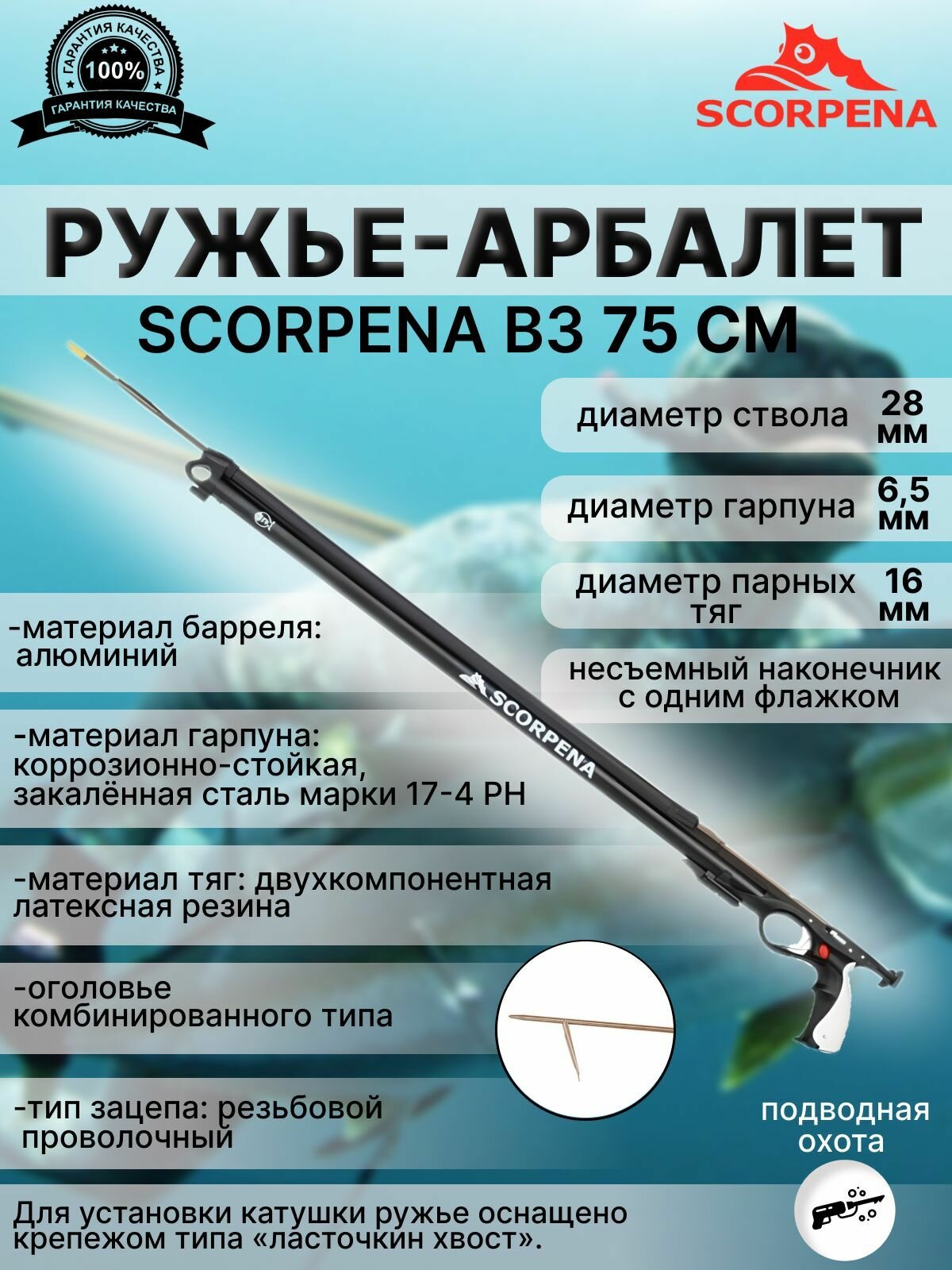 Ружье-арбалет для подводной охоты SCORPENA B3, 75 см интересное: