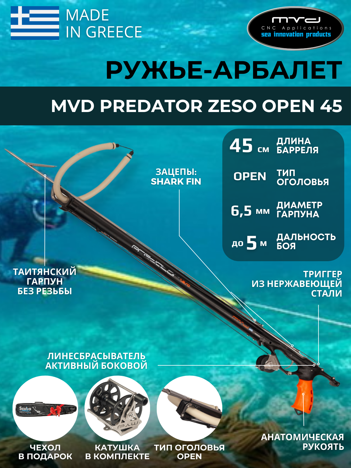 Купить Ружье-арбалет MVD PREDATOR ZESO OPEN 45 см, с катушкой, полный комплект