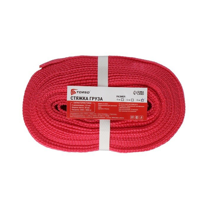 Стяжка груза TORSO с механизмом 110 мм, ширина ленты 38 мм, нагрузка 2/4 т, длина 8 м интересное: