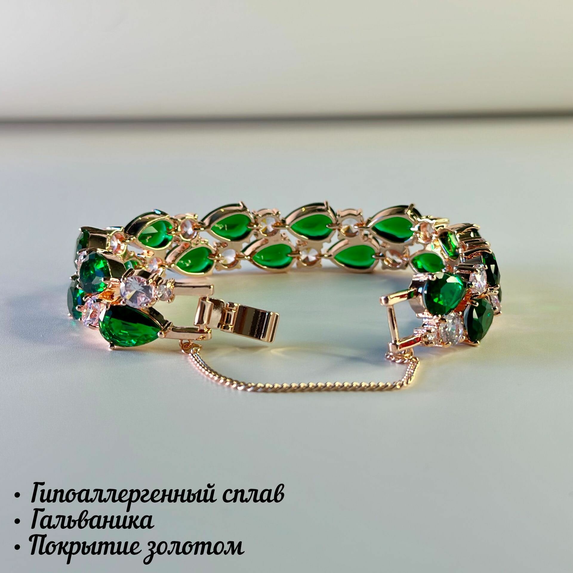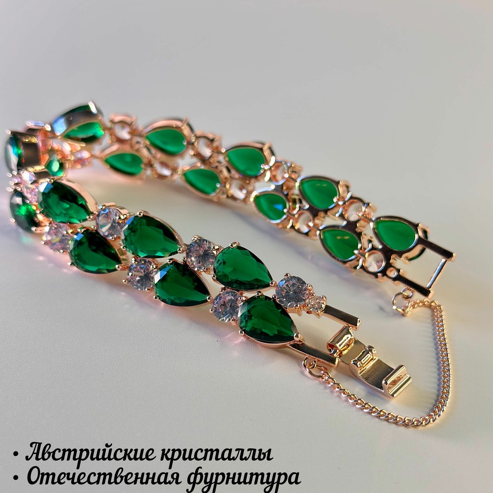 Ниже Вы можете прочитать отзывы на Женский позолоченный браслет "Восторг" с зелёными и прозрачными кристаллами., ознакомится с подробными характеристиками, посмотреть интересные обзоры и фотографии на Женский позолоченный браслет "Восторг" с зелёными и прозрачными кристаллами..