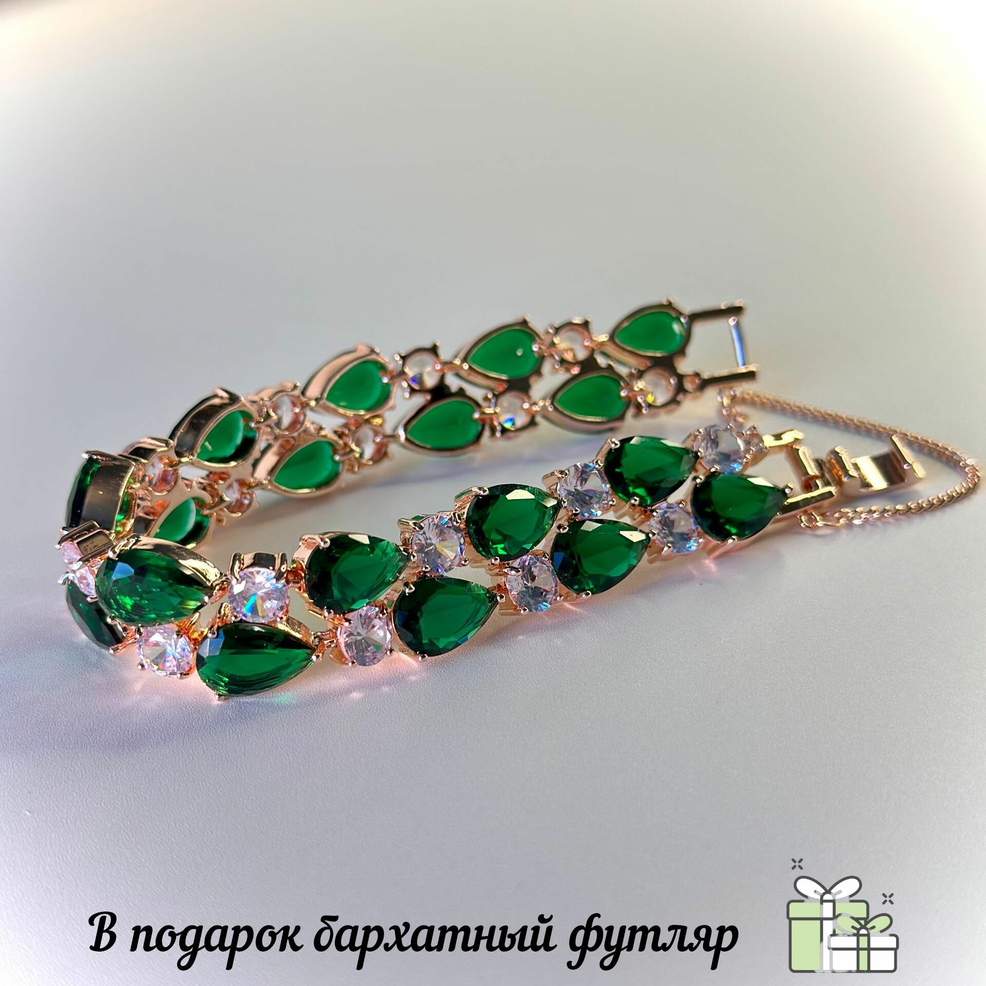 СохранитьЖенский позолоченный браслет "Восторг" с зелёными и прозрачными кристаллами. интересное:
