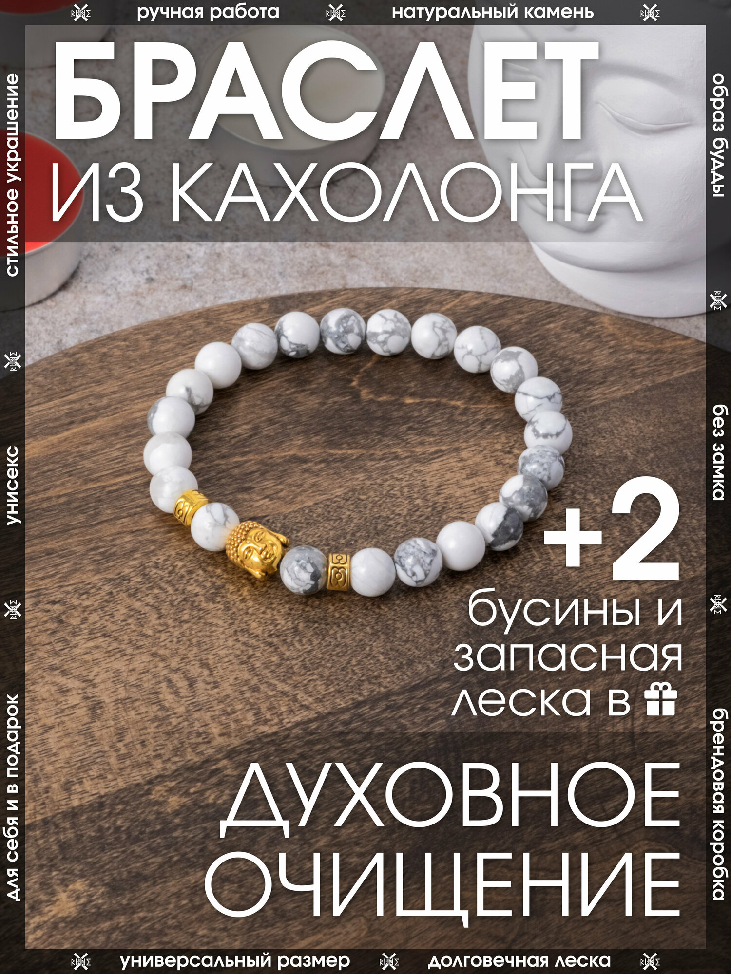 Купить Защитный тибетский браслет Будда из натурального камня Кахолонг/Охранный оберег-талисман из бусин на руку белый/Бижутерия для мужчин и женщин