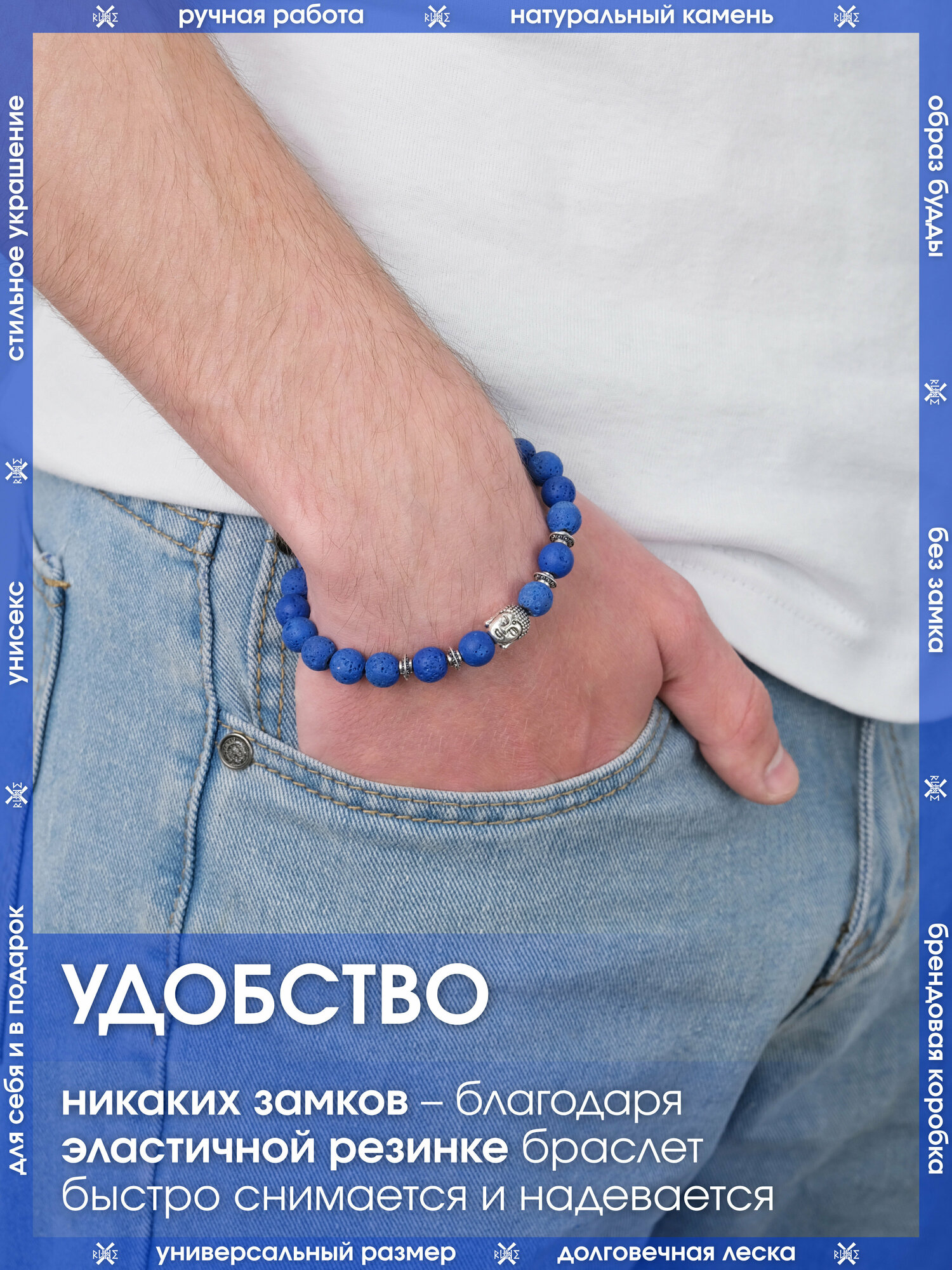 СохранитьЗащитный тибетский браслет Будда из натурального камня Лава/Охранный оберег-талисман из бусин на руку синий/Бижутерия для мужчин и женщин интересное:
