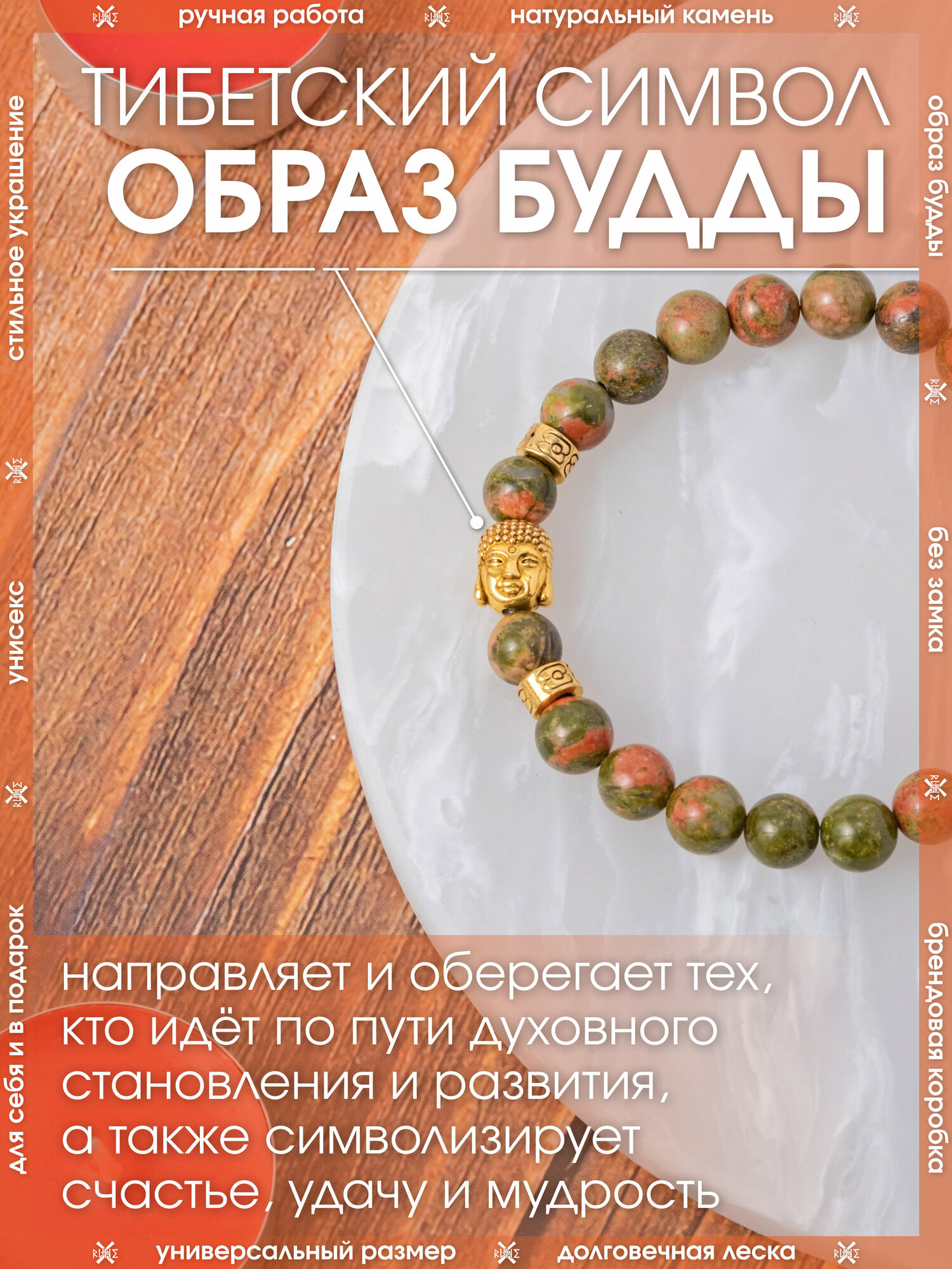 Купить Защитный тибетский браслет Будда из натурального камня Унакит/Охранный оберег-талисман из бусин на руку хаки/Бижутерия для мужчин и женщин