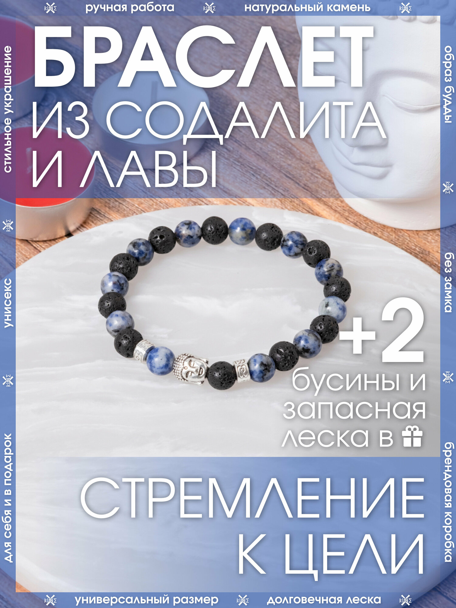 Браслет X-Rune, Тибетский браслет с образом Будды из натурального лазурита