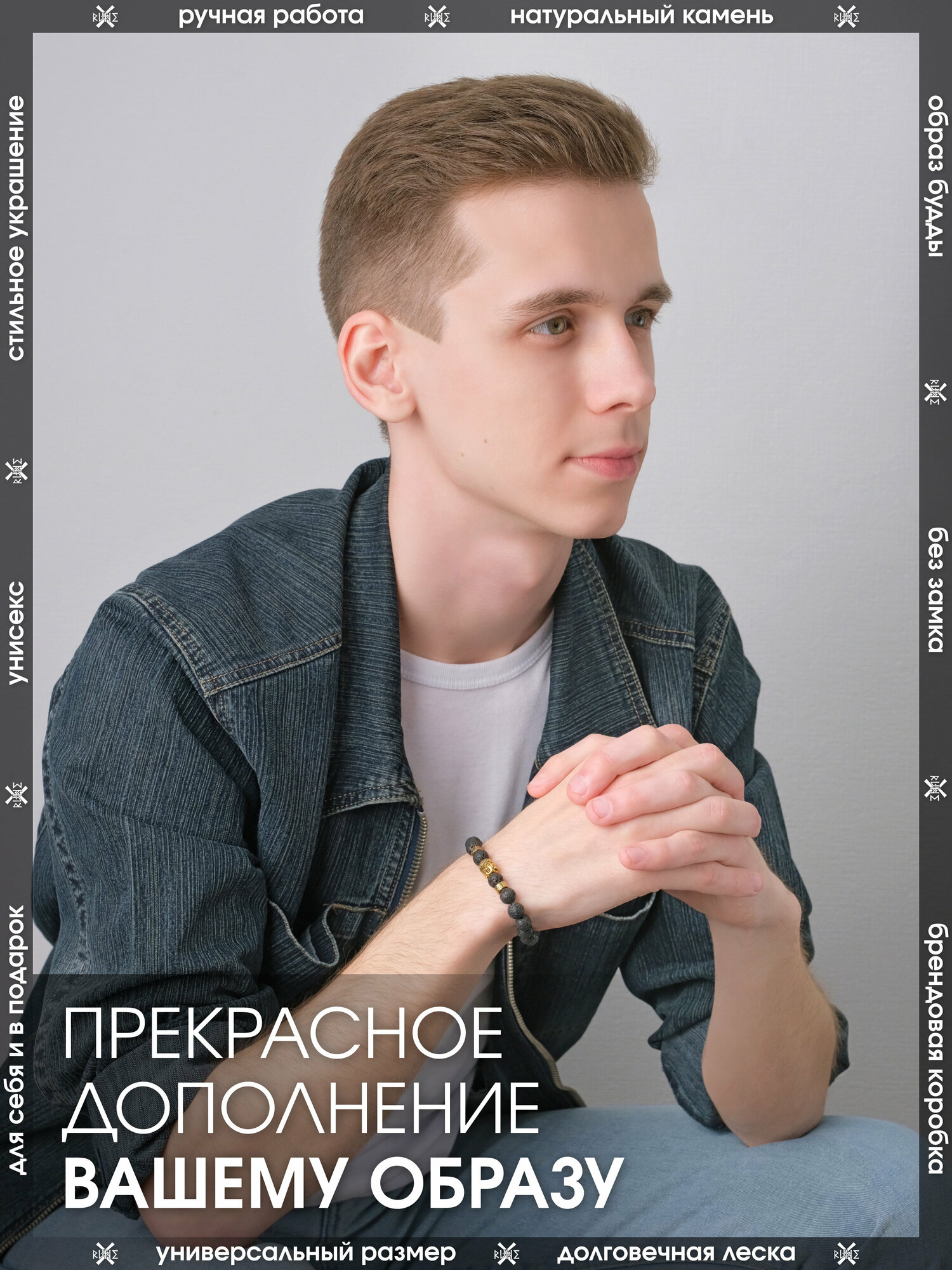 Купить Защитный тибетский браслет Будда "Защитник бытия" из натурального камня Лава/Охранный оберег-талисман на руку/Бижутерия для мужчин и женщин