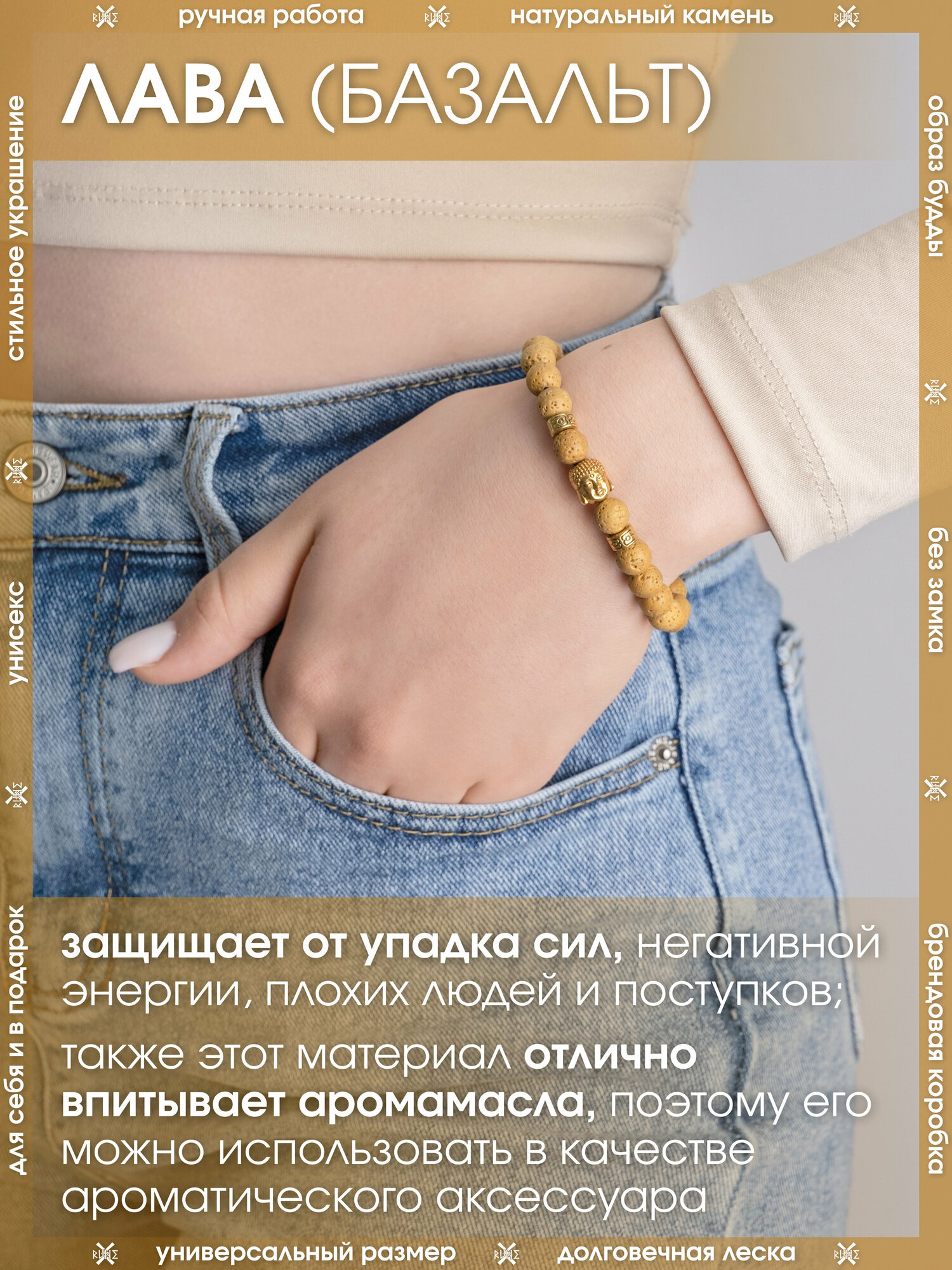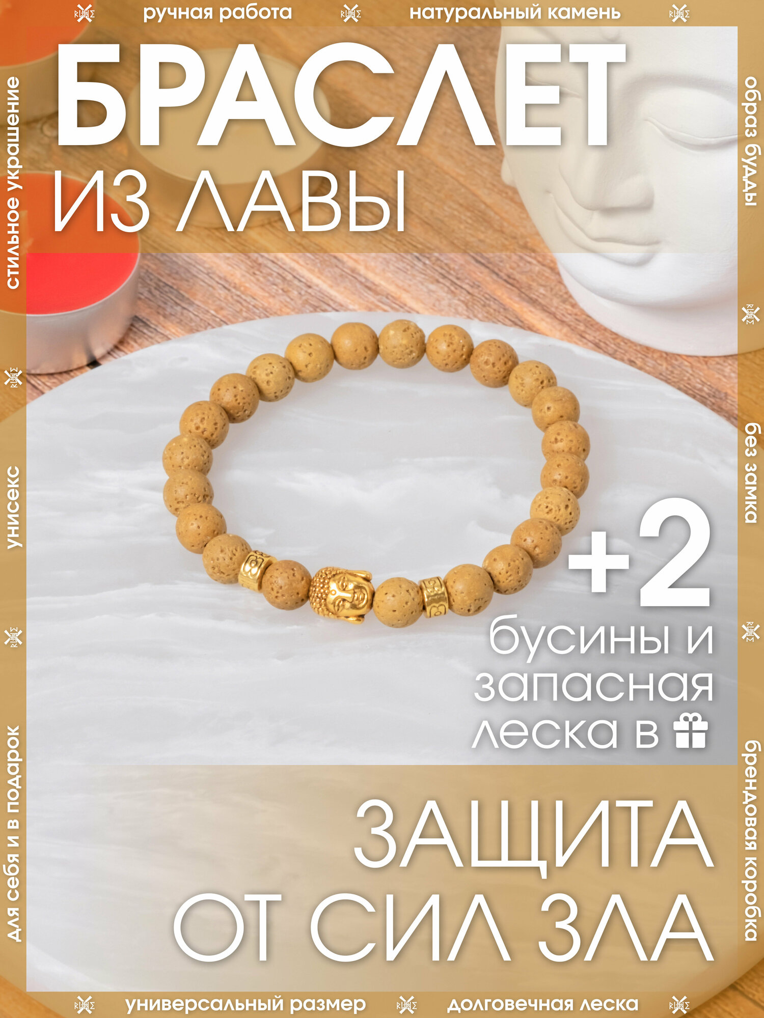 СохранитьЗащитный тибетский браслет Будда из натурального камня Лава/Охранный оберег-талисман из бусин на руку бежевый/Бижутерия для мужчин и женщин интересное: