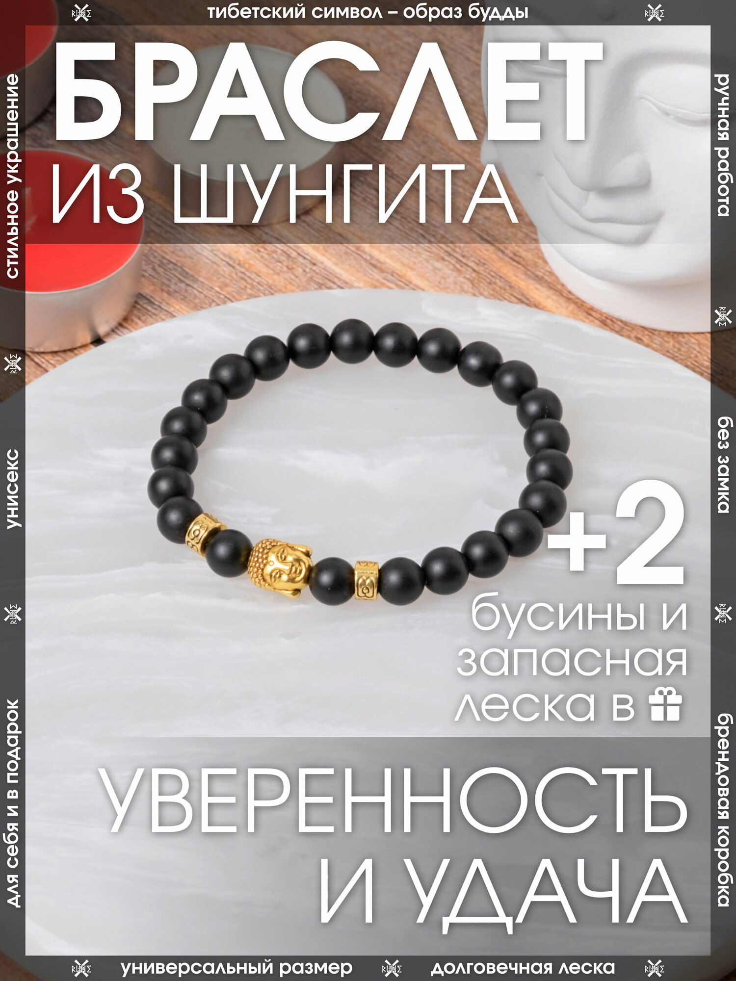 Купить Защитный тибетский браслет Будда из камня Шунгит/Охранный оберег-талисман из бусин на руку черный/Бижутерия для мужчин и женщин