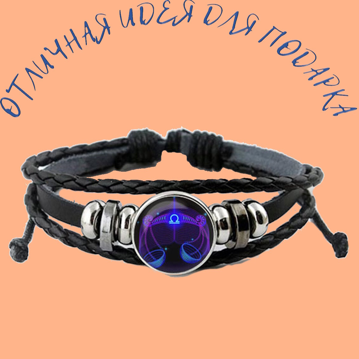 Светящийся кожаный браслет / по знаку зодиака "Весы"/ в подарочной коробочке